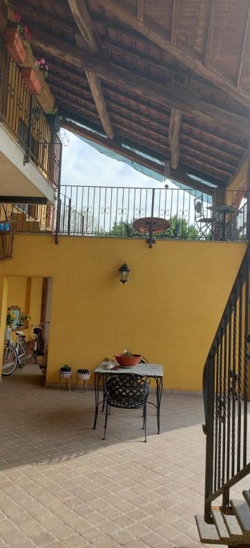 Quota intera proprietà appartamento al piano primo composto da soggiorno, cucina, disimpegno zona notte, camera da letto matrimoniale con bagno ad uso esclusivo, camera singola, bagno, cabina armadio e terrazzo. Superficie complessiva netta di mq. 115,30. Al piano terra porticato da cui si accede ad un grande deposito attrezzi adibito ad appartamento composto da soggiorno, angolo cucina, camera da letto matrimoniale e bagno, locale caldaia cieco, bagno e lavanderia. Superficie complessiva netta mq. 211,20.
