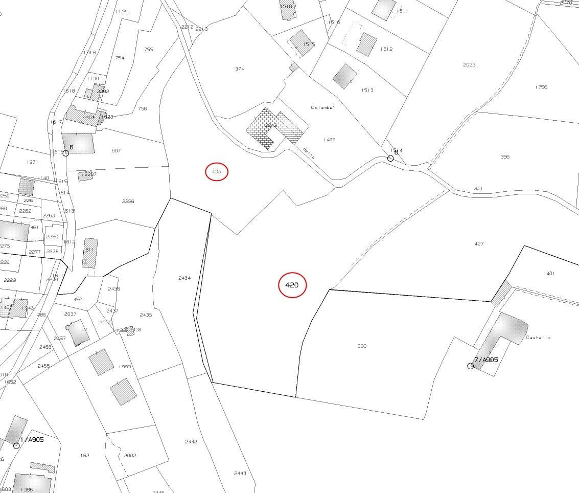 Proprietà Piena. In Comune Amministrativo di CASTELLO DI BRIANZA (LC), Sezione Censuaria di BRIANZOLA, alla via San Carlo senza numero civico, appezzamenti di terreno inseriti all'interno del Programma Integrato di Intervento denominato "Columbè", che prevede una destinazione d'uso residenziale.