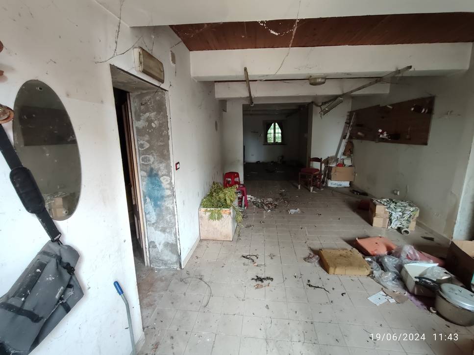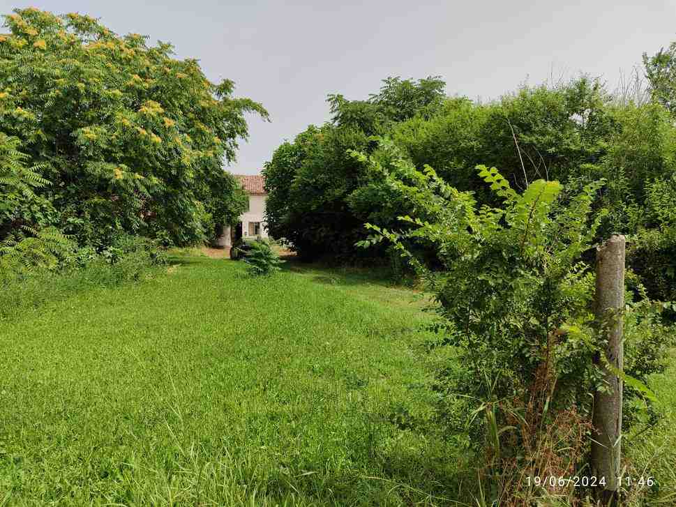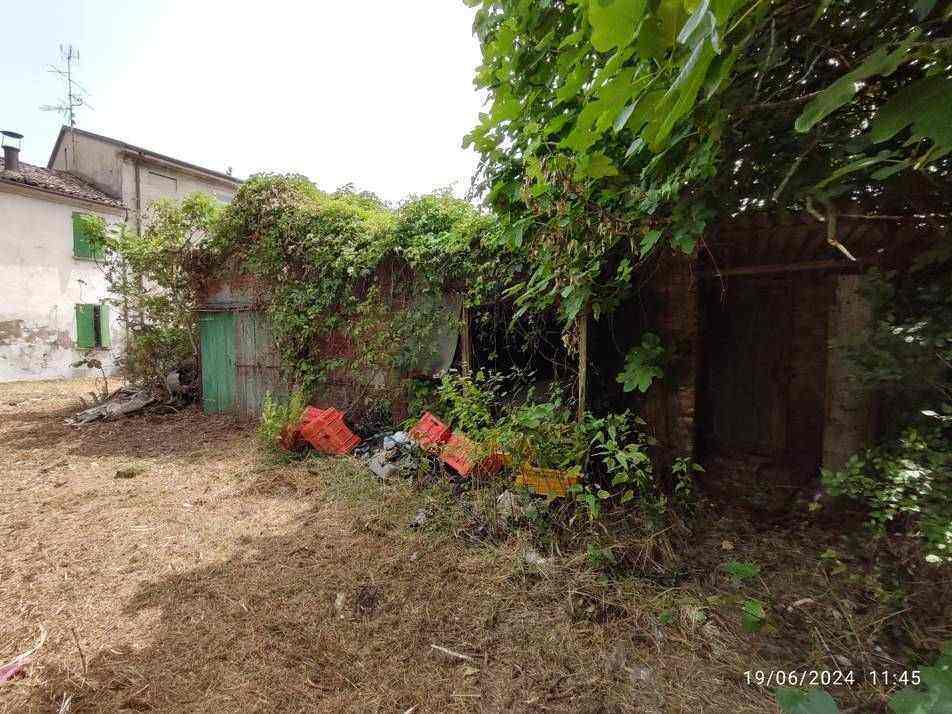 Piena proprietà di unità abitativa con doppio ingresso, disposta su due livelli oltre a soffitta, con area cortiva di pertinenza sviluppantesi in parte sul fronte ed in parte sul retro, nonché unità costituita da due autorimesse in muratura edificate in prossimità del confine di proprietà