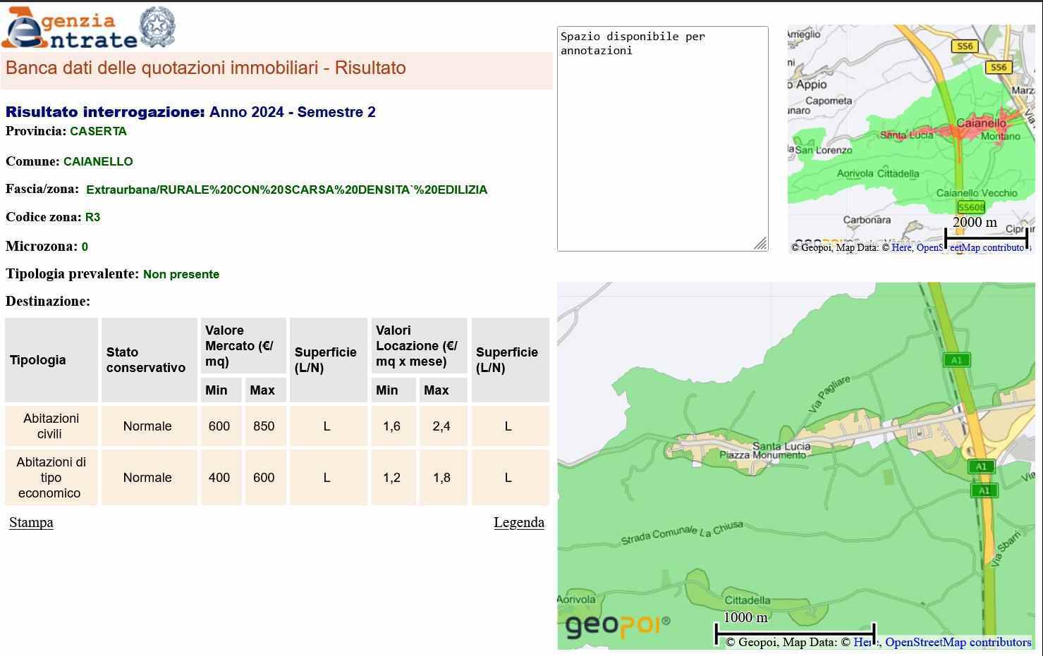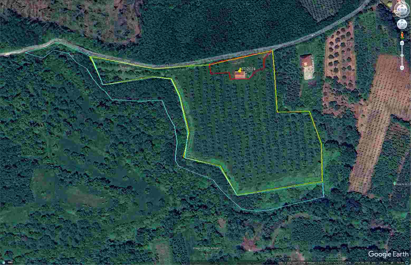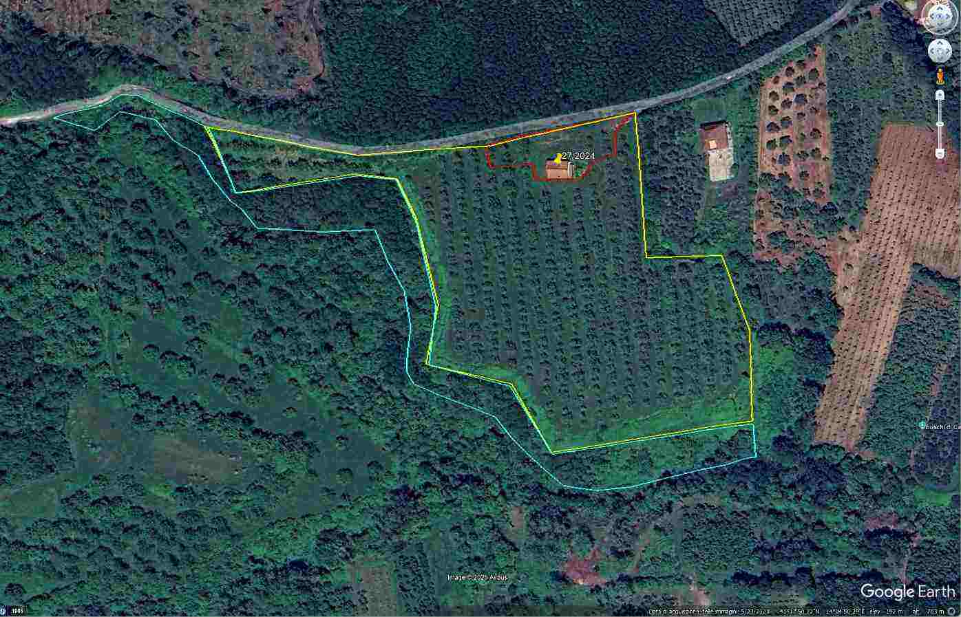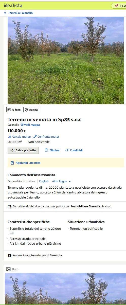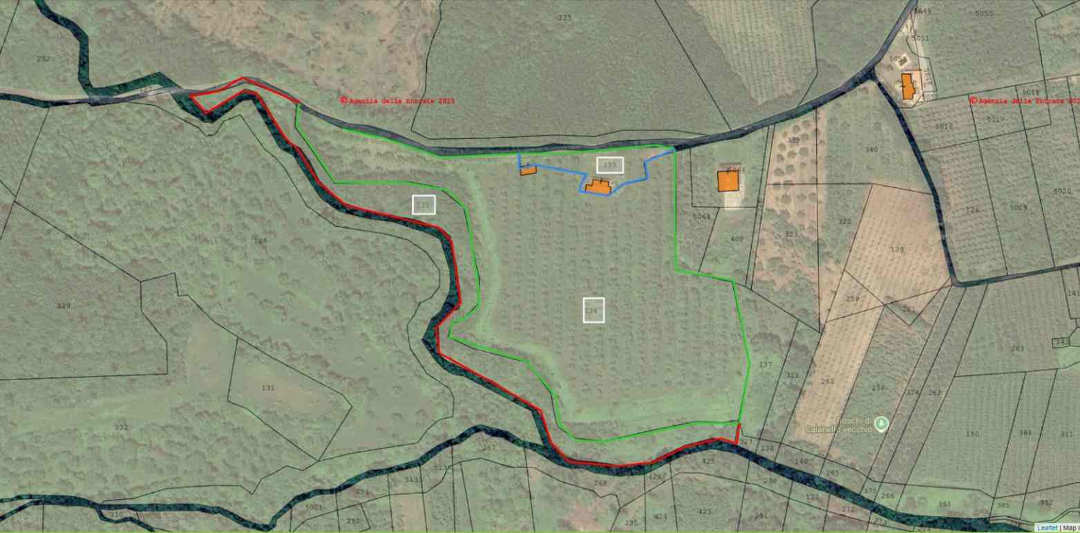 Piena ed intera proprietà di 3 terreni agricoli di 45.815,00 mq. Uno con fabbricato indipendente, F/3, piano unico: soggiorno, cucina, bagno e n. 2 camere da letto, con terrazzino ed un’area porticata, mq 150 e terreno di mq. 2.165 parzialmente coltivato con alberi di noce; un altro terreno pianeggiante e sistemato con una coltivazione di alberi di noce e impianto di irrigazione a goccia di mq. 34.957 con pozzo artesiano e all’allaccio con l’acquedotto; un altro terreno agricolo incolto di mq. 8.693,00.