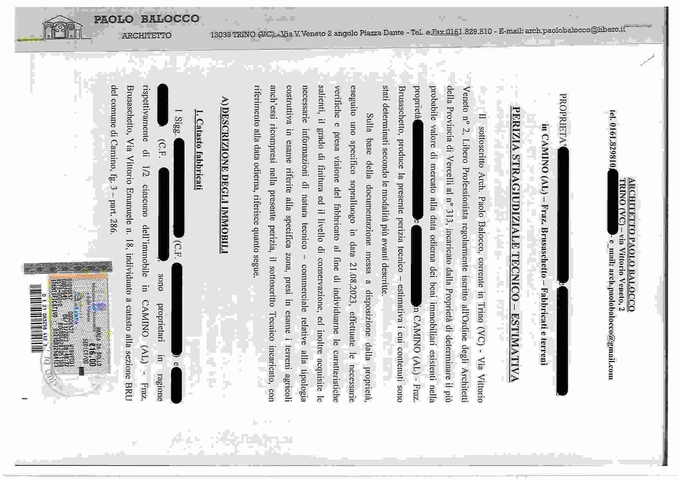 Quota di 1/2 della Piena Proprietà: 1. Fabbricato residenziale a tre piani, comprensivo di area scoperta. Occupato dalla comproprietaria, titolare del diritto di abitazione sulla propria quota; 2. Appezzamenti di terreno di mq 19.218,00, suddivisi in varie particelle con destinazione a seminativo e bosco ceduo.