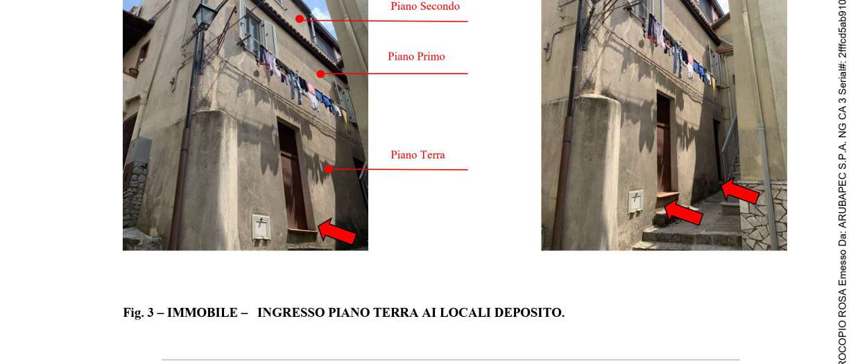 Unità immobiliare costituita da fabbricato a tre piani fuori terra, con superficie catastale pari a mq 143,50 (pari alla somma dell'appartamento (mq 128) e della superficie dei locali deposito (mq 62) calcolata al 25% circa, composta da piano terra, primo e secondo, di vani catastali 4,5.