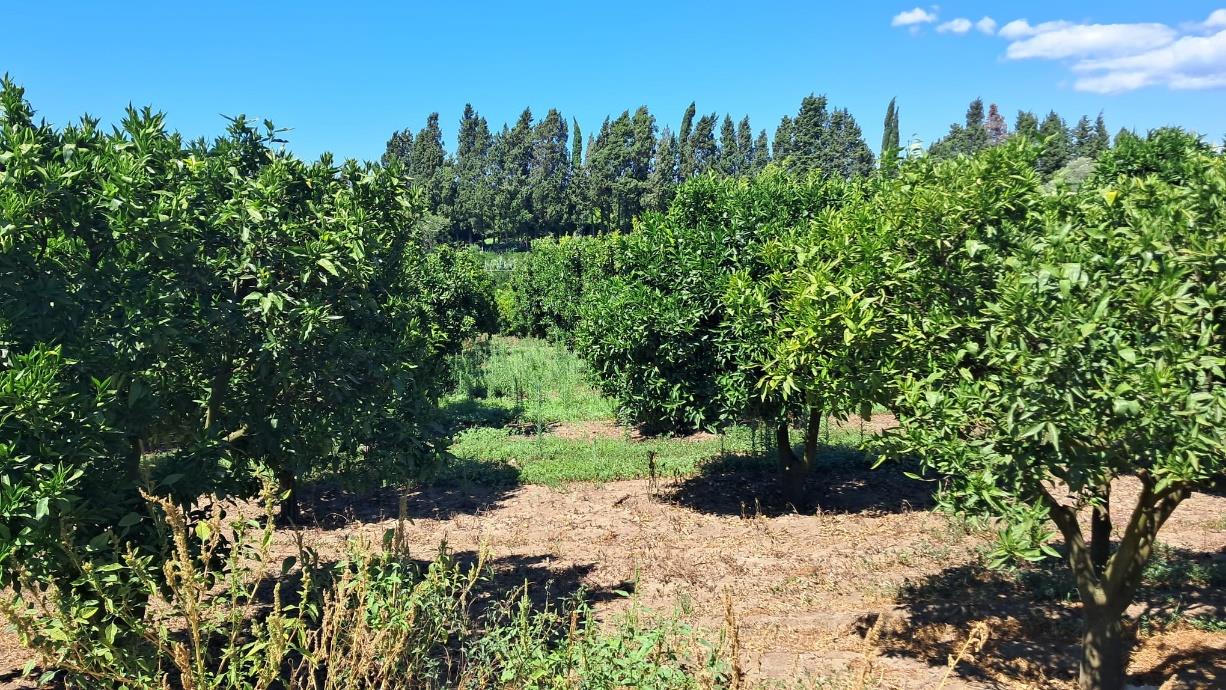 Quota pari ad 1/2 della piena proprietà fondo rustico coltivato ad agrumi, della superficie complessiva di ettari 8.38.80. Il terreno, coltivato ad agrumi, si presenta con giacitura pressoché pianeggiante, in discrete condizioni di vegetazione ed è dotato di impianto di irrigazione fisso ad aspersione sopra chioma ed in alcuni settori con impianto per irrigazione localizzata con micro getti.