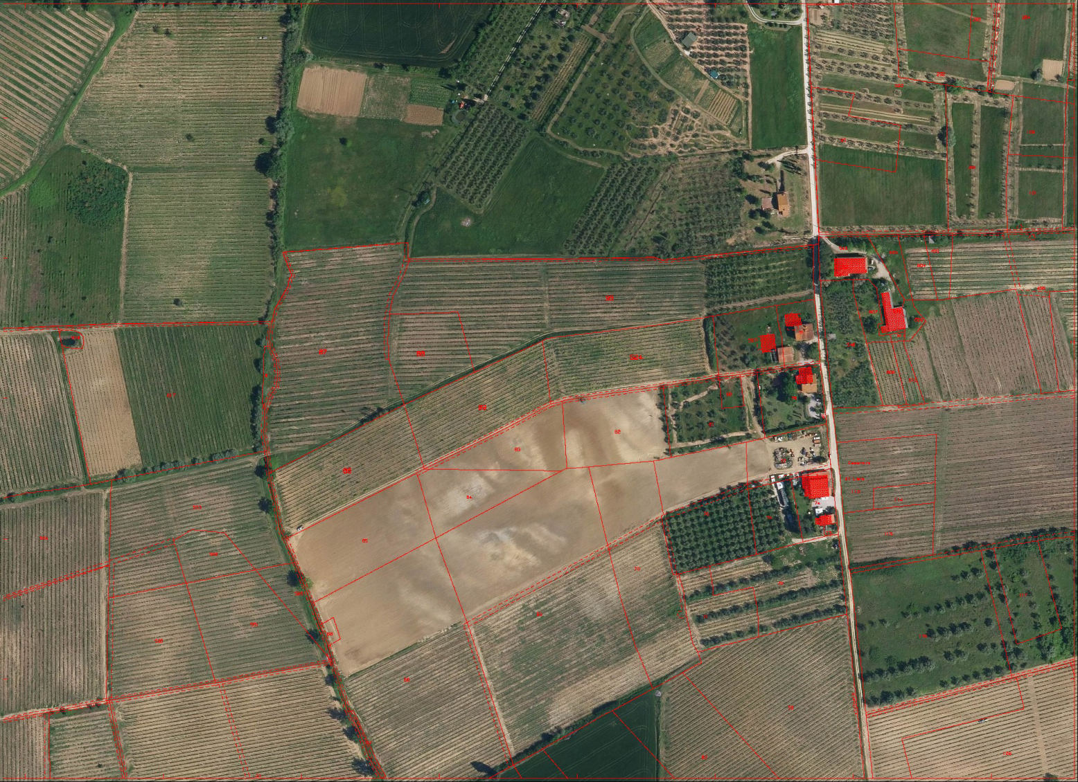 Piena proprietà sull'intero di appezzamenti di terreno posti in Vinci (FI) località S. Ansano, tenuti a coltura a vigneto specializzato di recente impianto e piccolo uliveto.