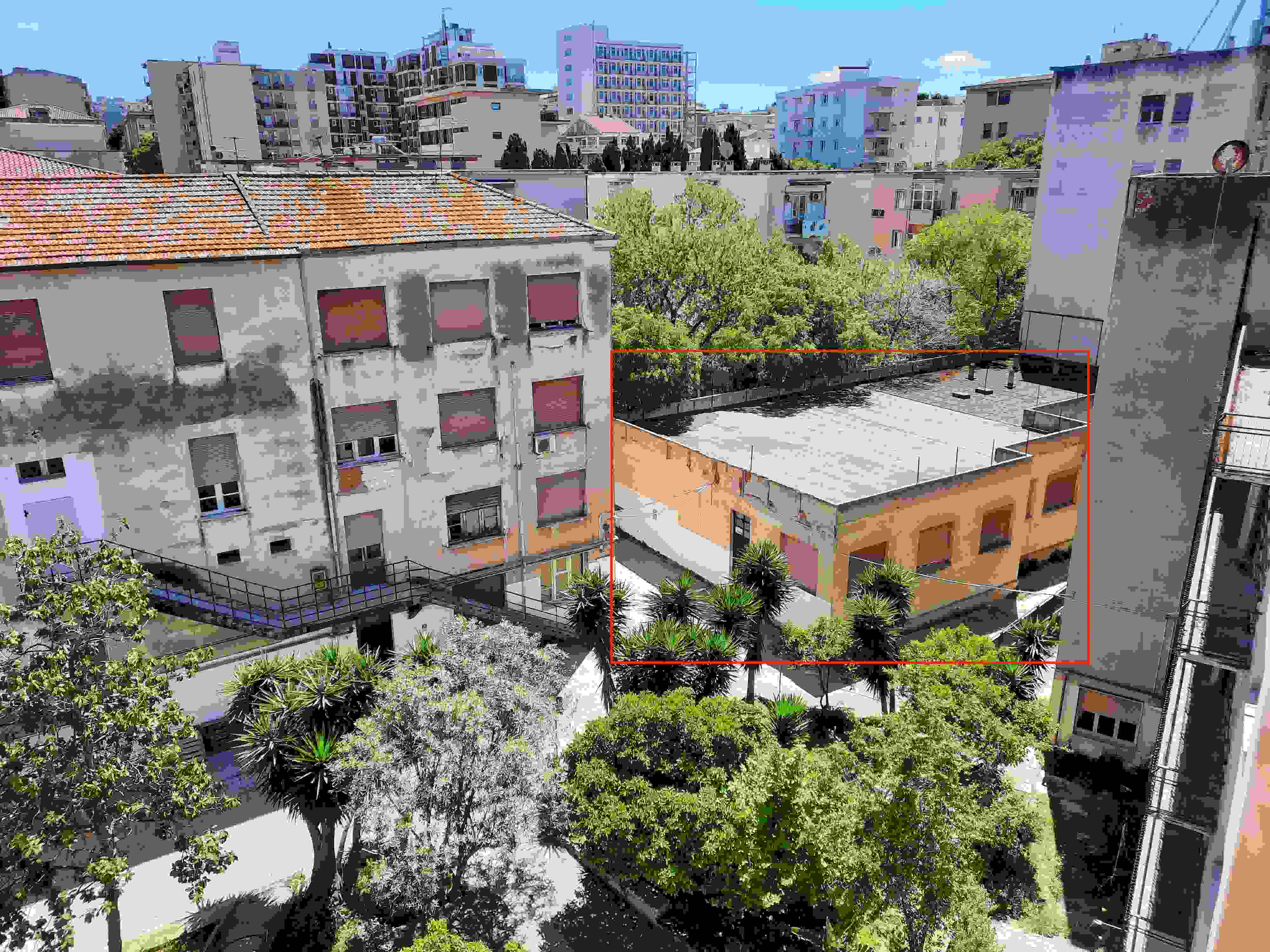 Piena proprietà di un fabbricato ubicato in Sassari, Via Taddei n. 5, avente consistenza di circa 1.667,00 mq, categoria catastale B/5. L’immobile è composto da un solo piano fuori terra e dunque si sviluppa interamente al piano terreno. È confinante con un cortile interno, con accesso sia dalla pubblica via, tramite accesso carrabile, sia dal fabbricato.