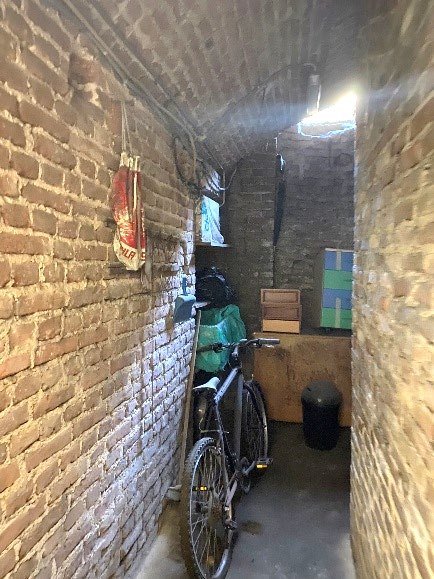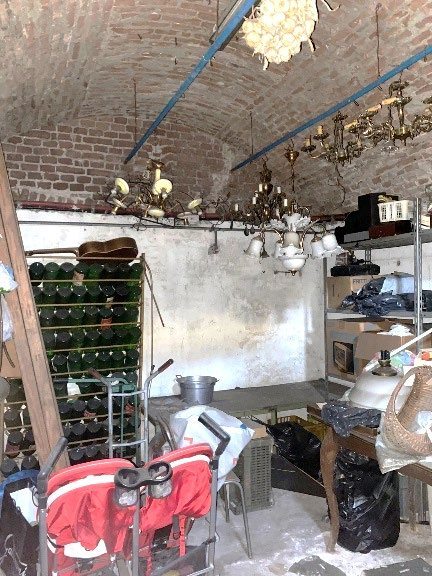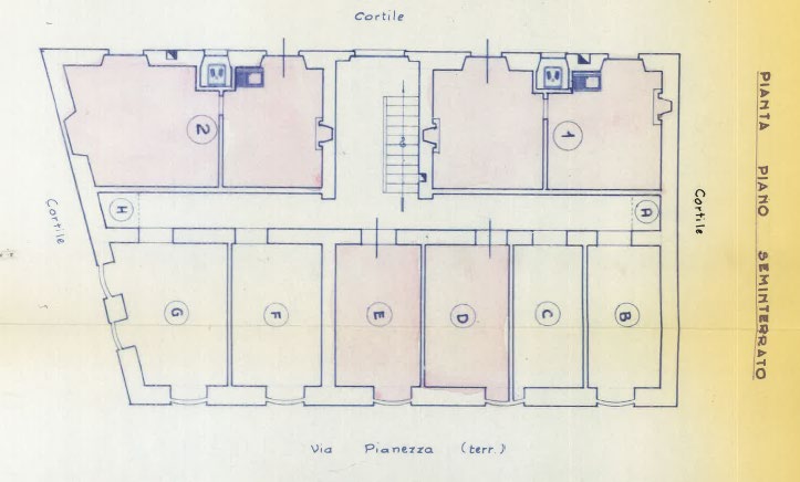 -unità immobiliare di circa mq 32, con destinazione abitativa originaria, attualmente utilizzata come magazzino, composta da due vani non comunicanti oltre a piccolo vano ripostiglio (ex latrina) al piano seminterrato, tutti e tre con accesso dal cortile comune, distinta con il numero 1 e colore rosso nella planimetria allegata all’atto di divisione Notaio Picco di Torino dell’11/08/1972, reg. a Torino 25/8/1972 n. 28347.Coerenze: altro condominio, cortile comune, vano scala, corridoio comune.