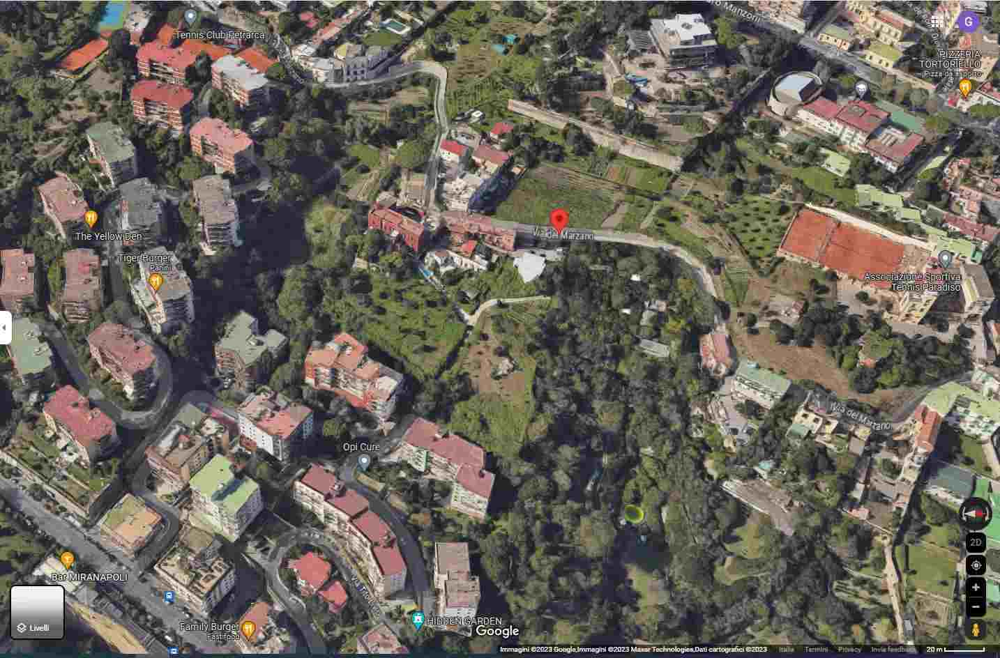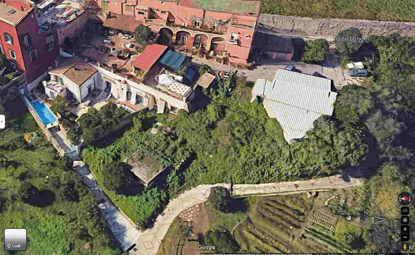 FABBRICATO AUTONOMO CON UNITA’ APPARTAMENTO per civile abitazione sviluppata su più piani con antistante corte scoperta , con doppio ingresso carrabile dalla via del Marzano n° 5 e dalla via Tito Livio s.n.c. attraverso rampa in pendenza zona Posillipo , Napoli . Per il lastrico solare – terrazzo di copertura viene venduta solo la porzione allo stato libera ed al tempo accorpata alla particella 363.non viene venduta porzione di lastrico solare in possesso dal proprietario della particella 382