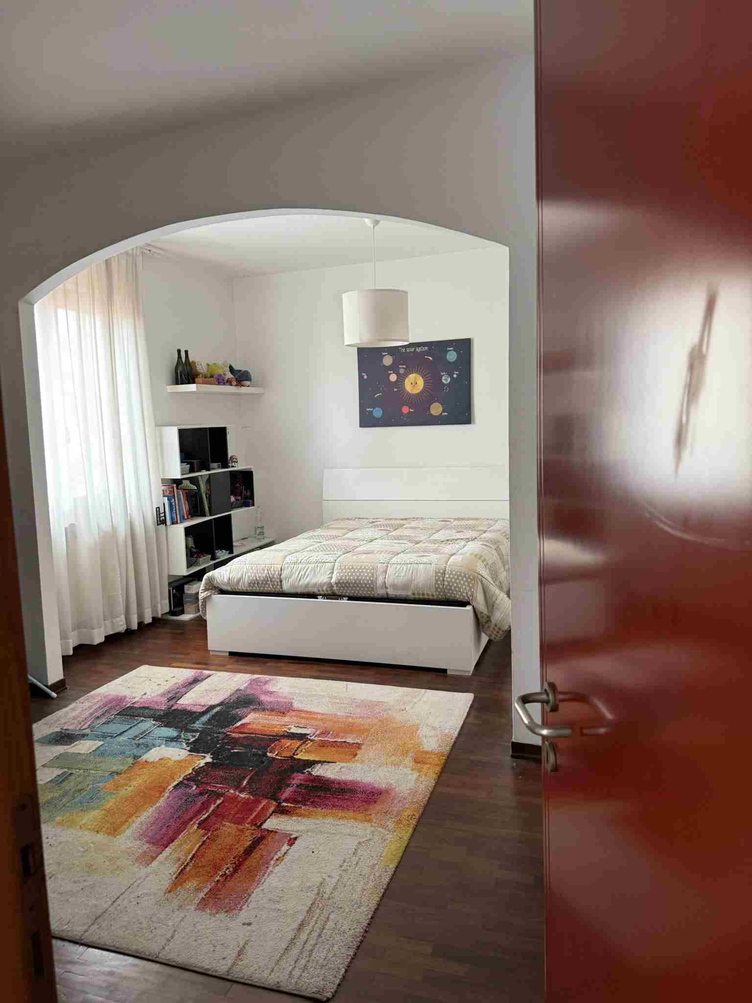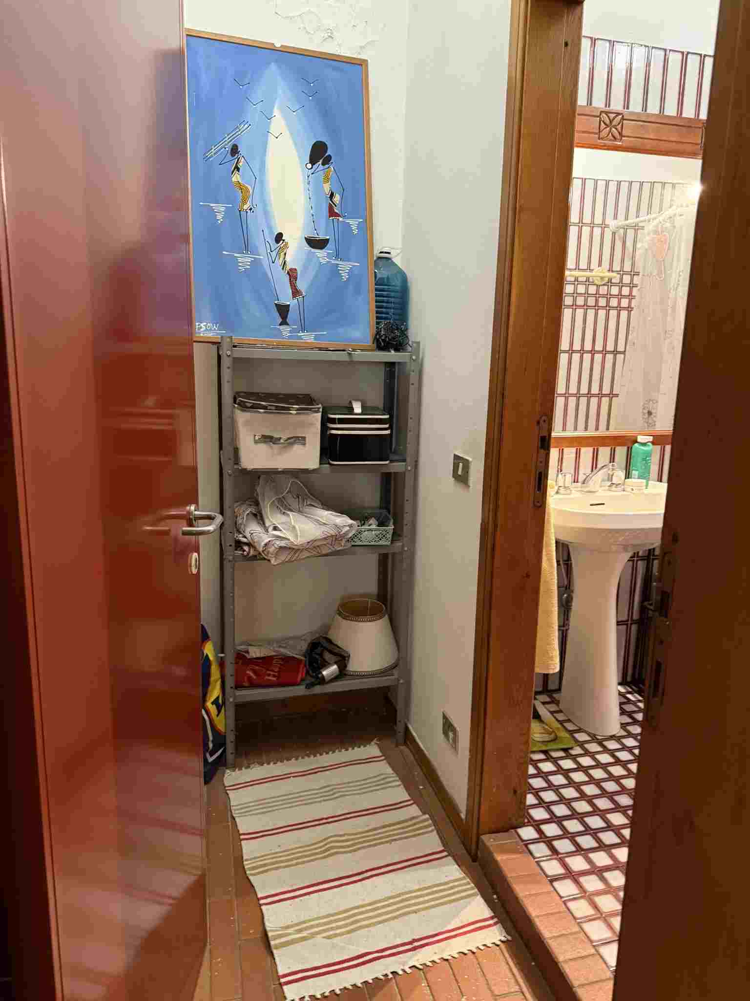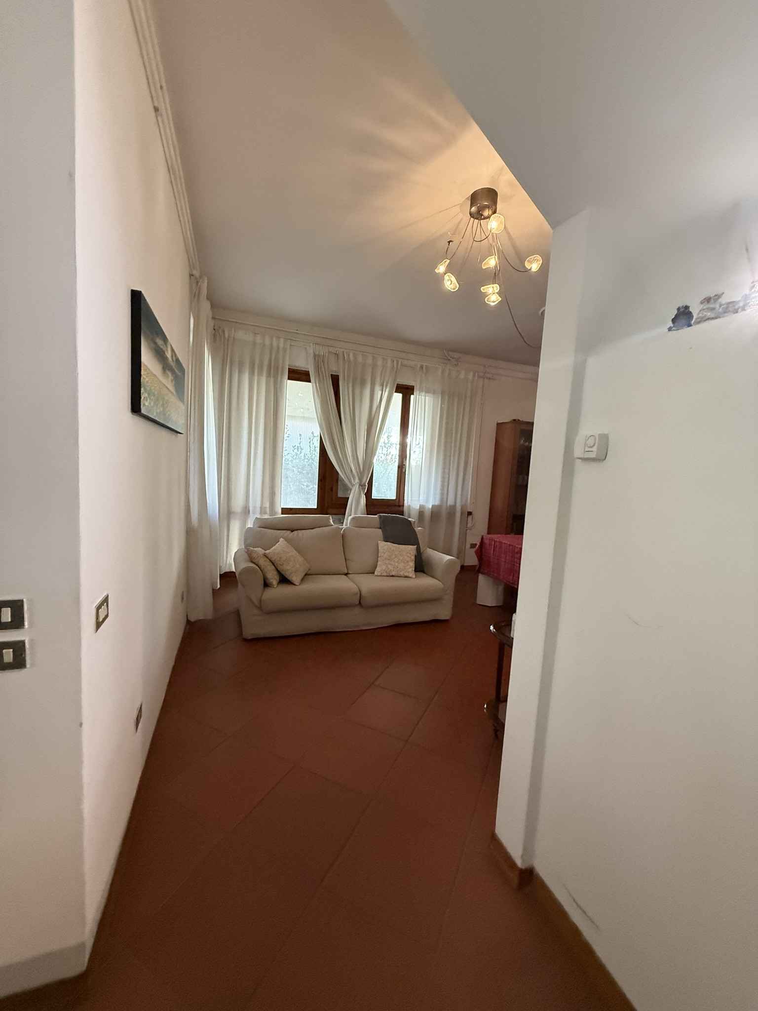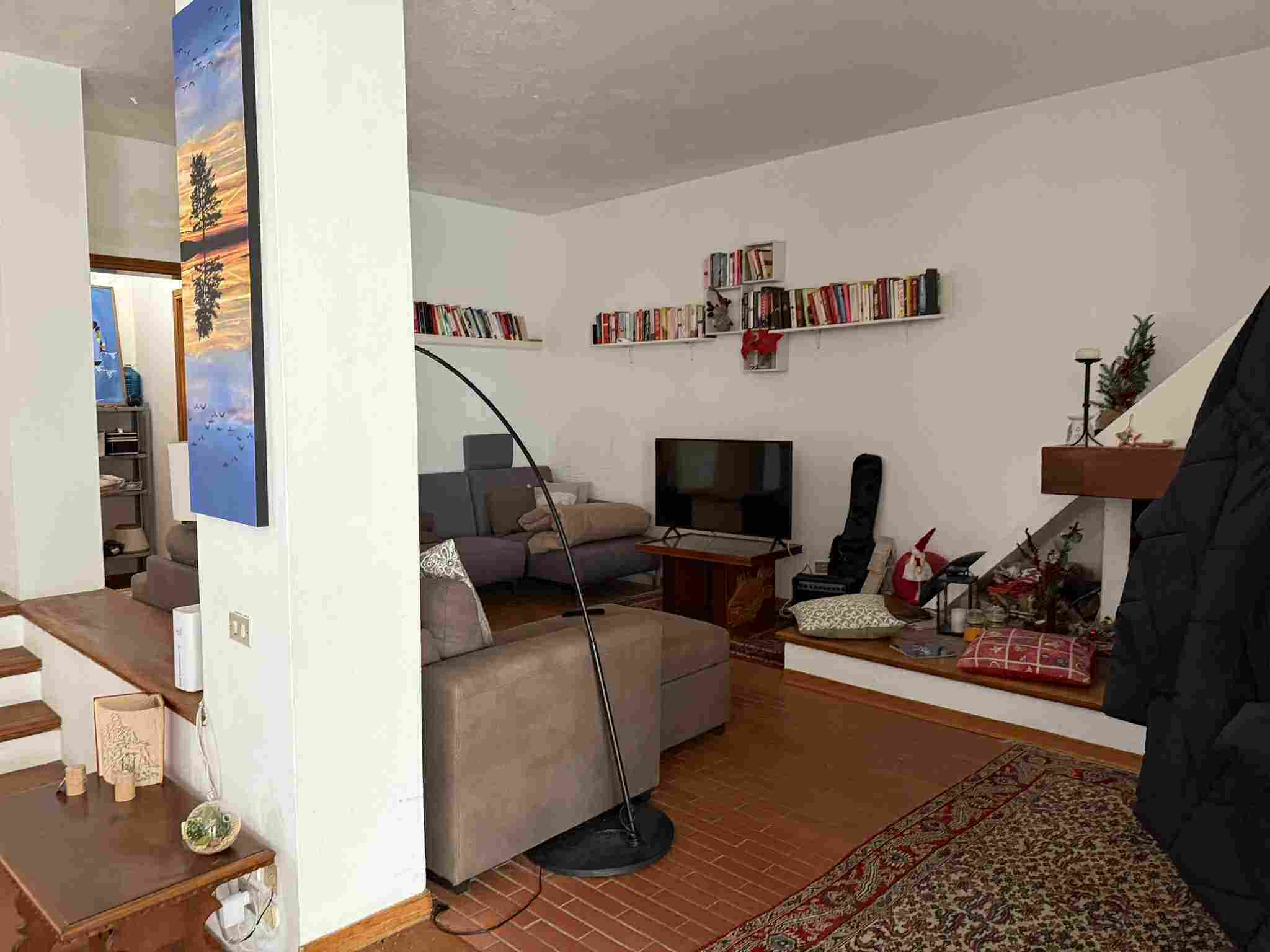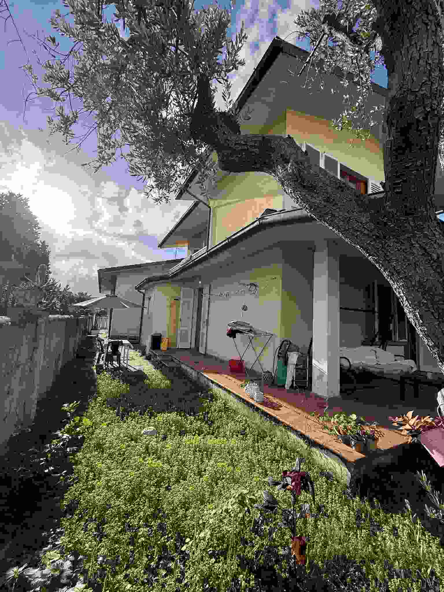 I diritti pari a 2/6 (due sesti) della piena proprietà su villetta bifamiliare elevata al piano terra, primo e seminterrato che si compone di: al piano terra di un'ampia zona giorno, con ingresso, soggiorno, sala con camino, pranzo e cucina abitabile, un bagno con antibagno e scala che conduce alla zona notte composta da tre camere, un ampio bagno e due balconi, è circondata da marciapiede esterno in cotto e da resede su tre lati parte inerbita e parte pavimentata con porfido posato ad "opus incertum".