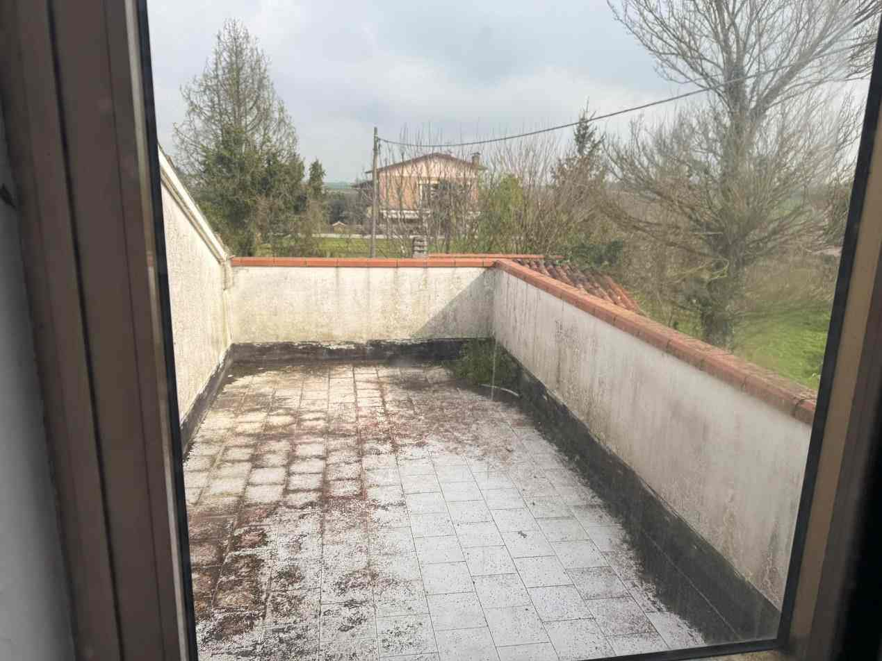 1/1 della piena proprietà di abitazione di tipo economico (A3) casa accostata (Corpo A: piano terra e primo, sup. catastale 290 mq) con annessi rustici (Corpo B: categoria C/6, piano terra, sup. catast. 25 mq) e scoperto (Corpo C). Identificazione catastale come da Avviso. Libero. Irregolarità, non dichiarata la conformità catastale (abusi non sanabili), Vincoli e oneri, il tutto come da Perizia a cui si rimanda per ogni specifica