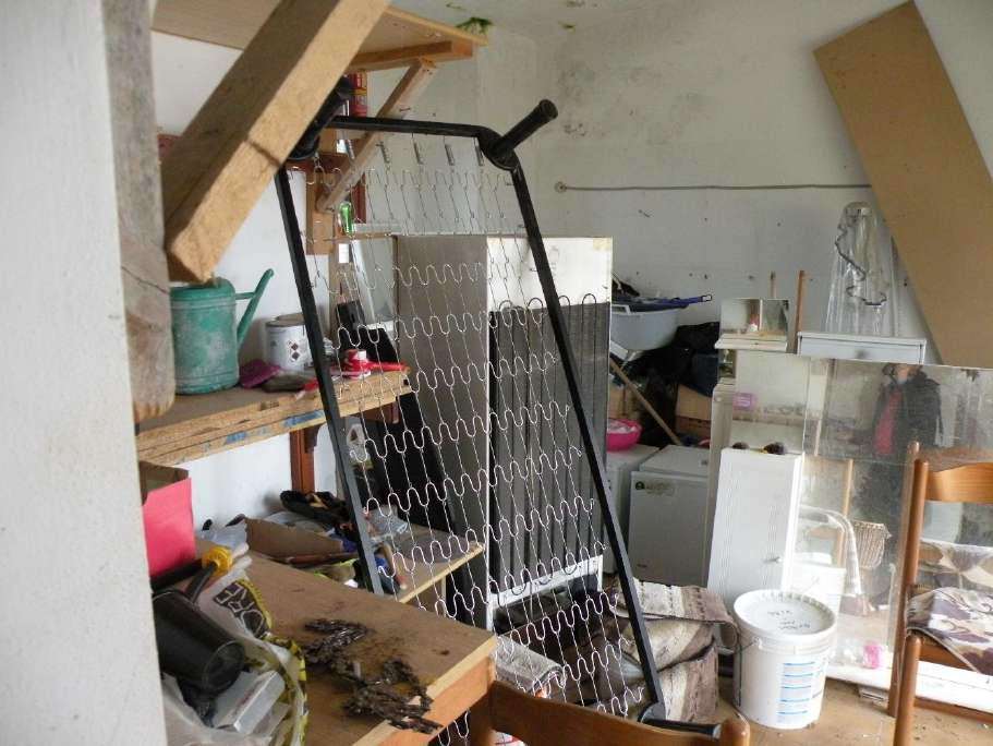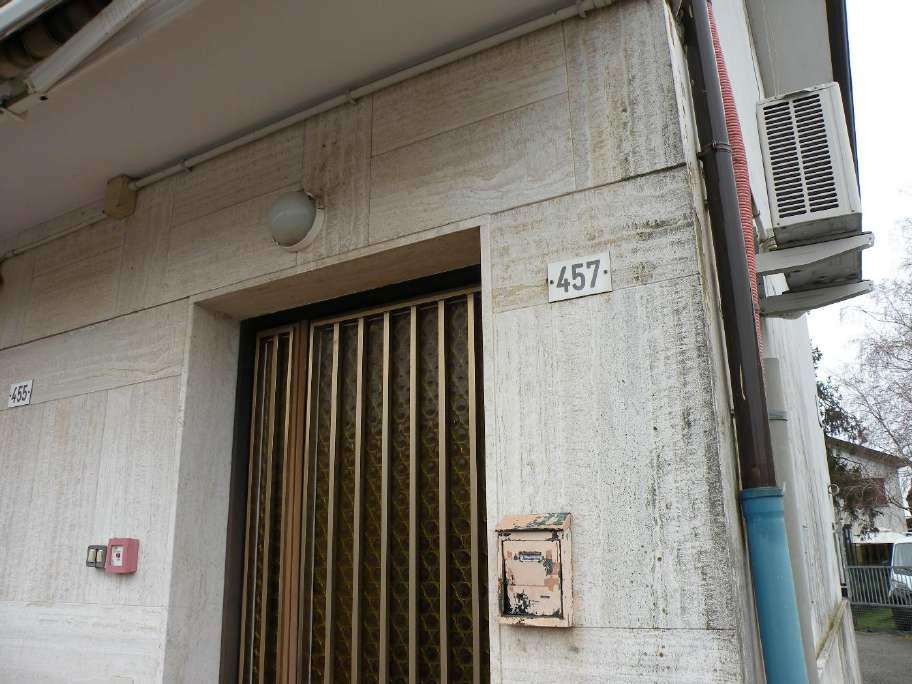 Appartamento al P.1 composto da: cucina, soggiorno con accesso alla terrazza, 2 camere, disimpegno e bagno. Autorimessa (con sottostante cantina), in corpo staccato, facenti parte di un piccolo complesso imm.re-condominiale, composto da 2 corpi di fabbrica, insistenti sull’area di cui al mapp. 27 del catasto terreni. Le unità imm.ri sottoposte a pignoramento hanno in comune con le altre unità costituenti il detto complesso, oltre alla corte comune scoperta, anche il vano centrale termica.