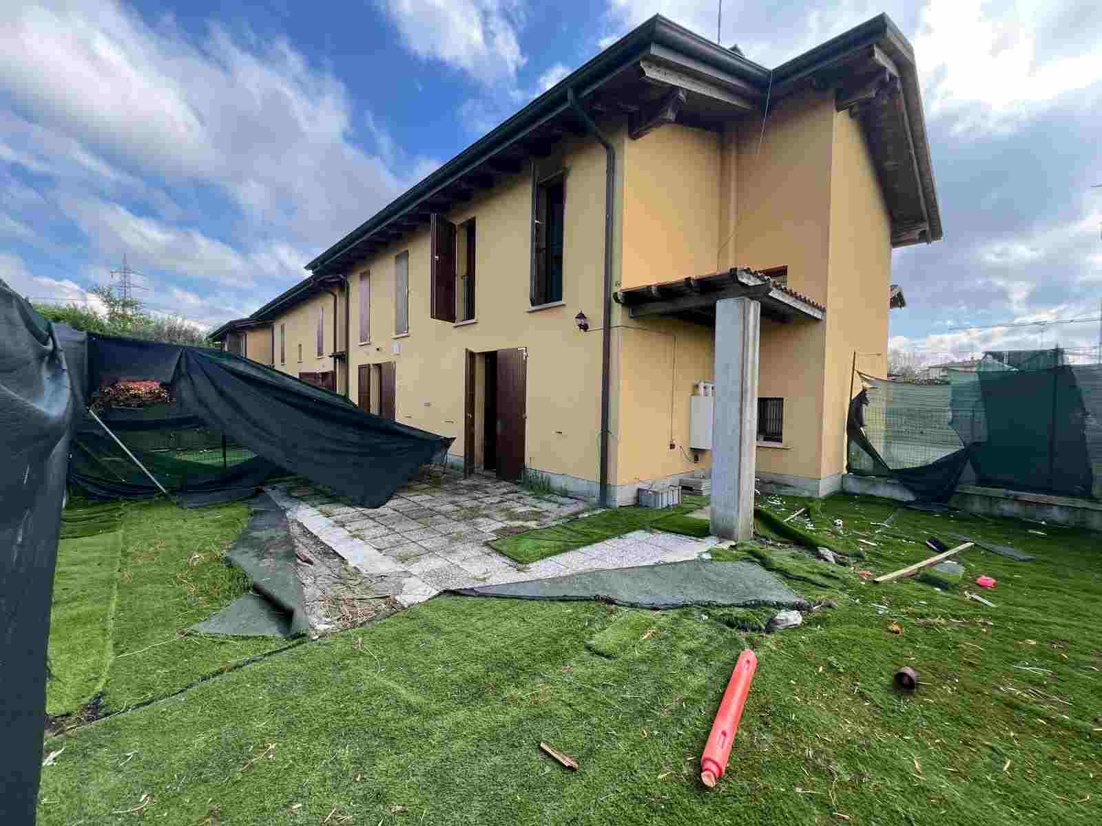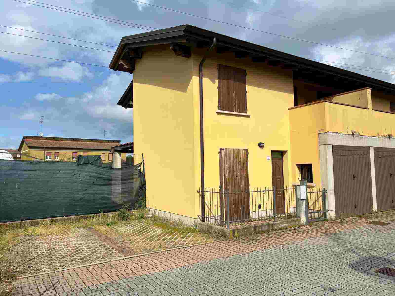Piena proprieta' di villetta di tipologia a schiera con autorimessa e aree esclusive, composta al piano terra da ingresso soggiorno, locale cottura, antibagno, wc, scala di accesso al piano superiore, portico esterno; al piano primo due camere da letto, bagno, corridoio distributivo e terrazzo. Superficie commerciale villetta pari a mq. 95,57; aree esclusive di mq. 113; autorimessa di mq. 14,00.L'immobile verra' consegnato libero a cura del Custode Giudiziario.