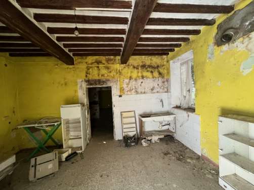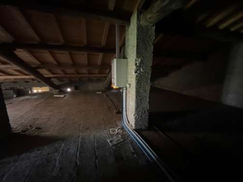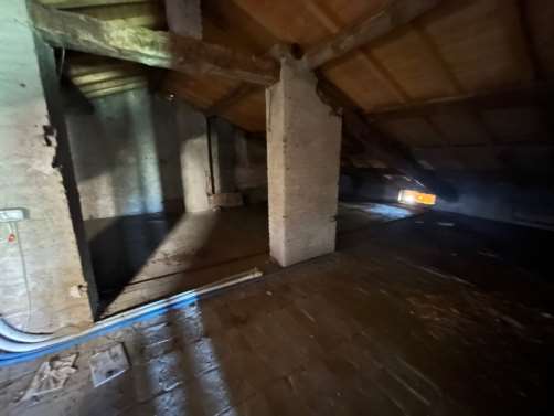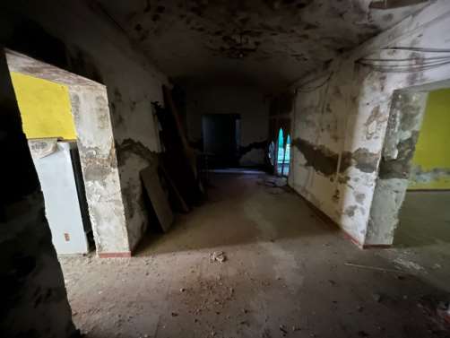 Piena proprieta' di alloggio composto al piano terra da porticato, ingresso, due camere, bagno, due locali uso cantina, locale lavanderia, vano scala che collega con il piano primo e sottotetto; al piano primo disimpegno, locale pranzo, cucina, tre camere da letto e bagno; sottotetto costituito da ampio locale. Superficie commerciale complessiva pari a circa mq. 110,00.L'immobile verra' consegnato libero a cura del Custode Giudiziario.