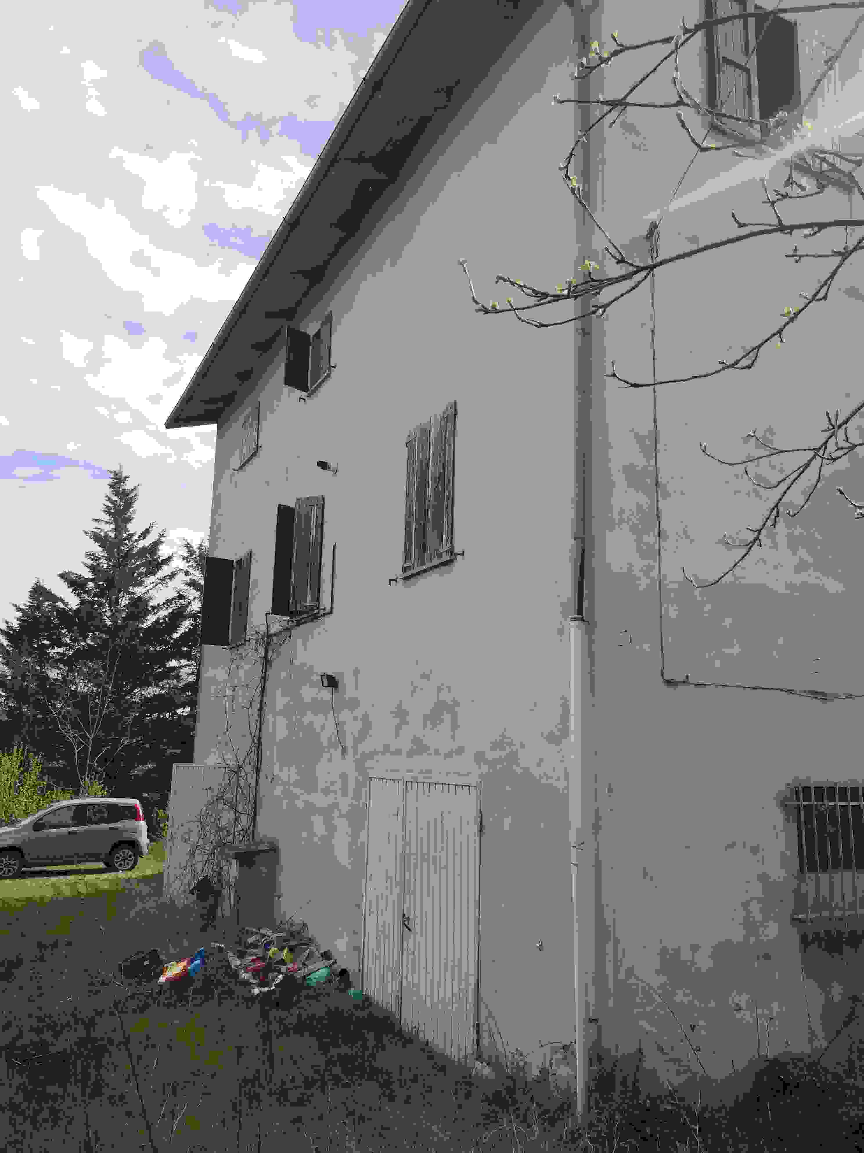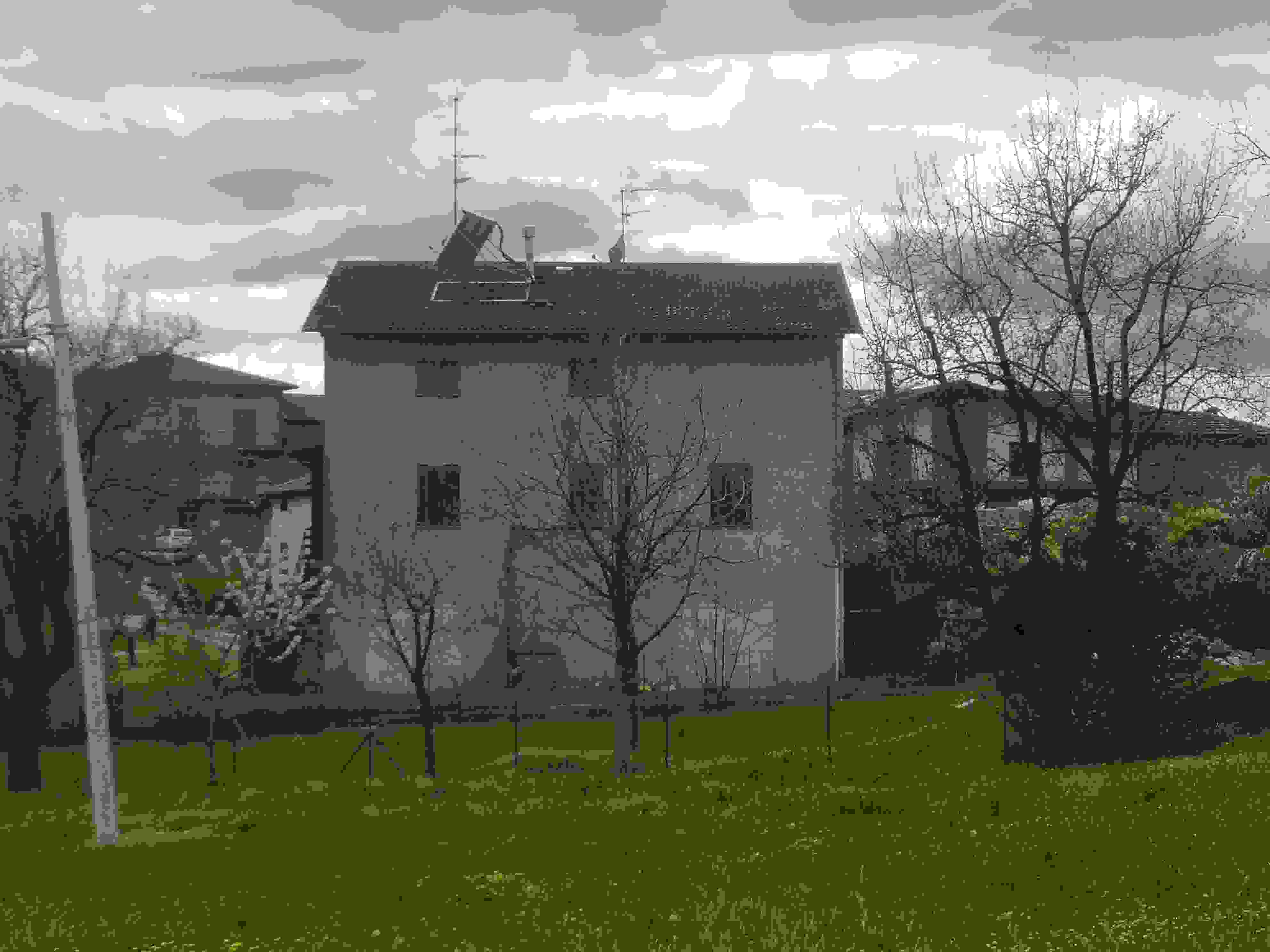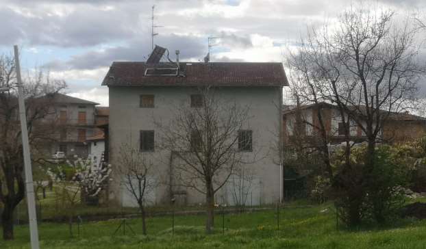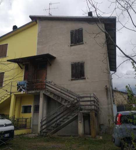Piena proprieta' di porzione di fabbricato da terra a tetto distribuito su tre piani fuori terra, composto da due autorimesse con cantina centrale al piano terra, abitazione al piano primo e secondo ed area cortiliva esterna esclusiva, oltre a quota su area di accesso pedonale e carraio. Superficie commerciale abitazione pari a mq. 167,70 circa; locali di servizio di mq. 41,92 circa.L'immobile verra' consegnato libero a cura del Custode Giudiziario.