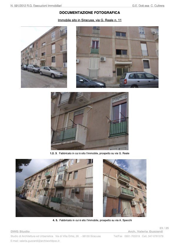 Appartamento sito in Siracusa, via Giuseppe Reale n. 11, al piano primo, censito al catasto dei fabbricati al Foglio 33 del Comune di Siracusa, Particella 1108, sub 3, categoria A/4 Abitazioni di tipo popolare, rendita catastale euro 255,65