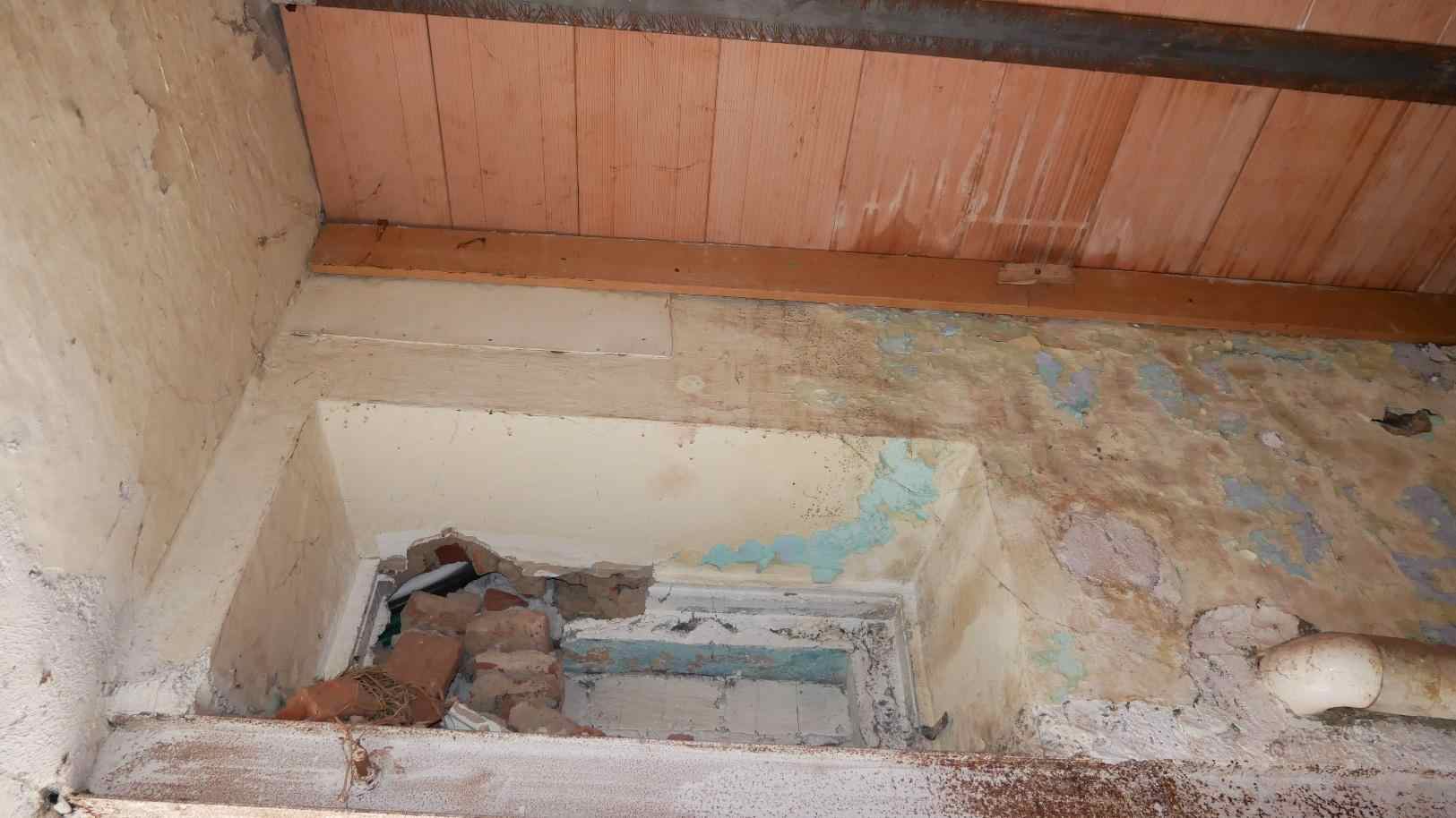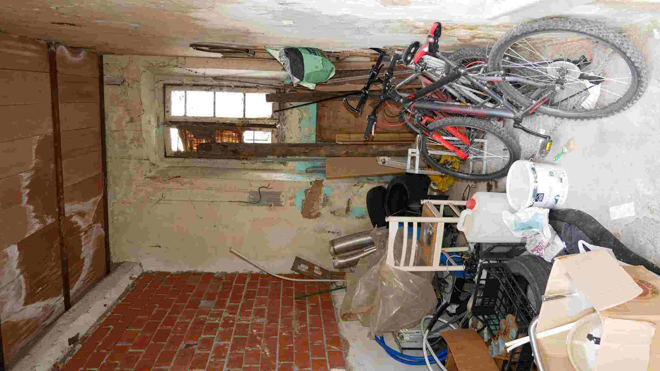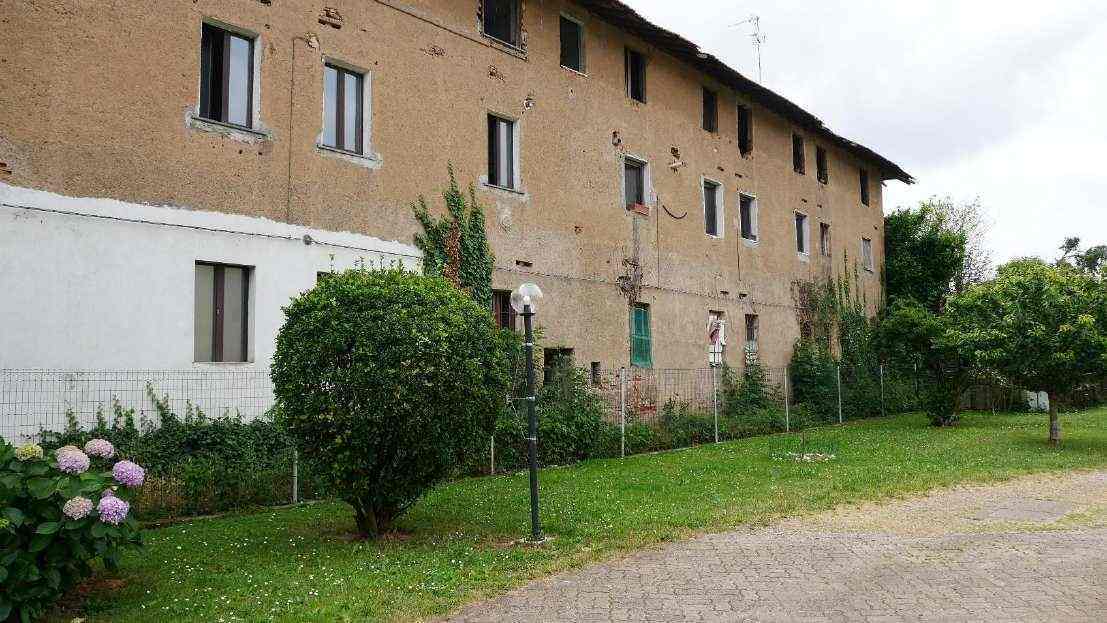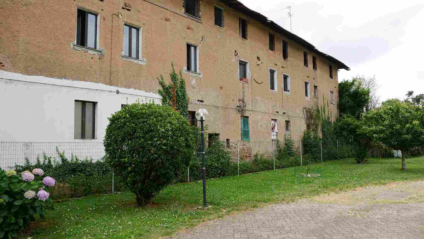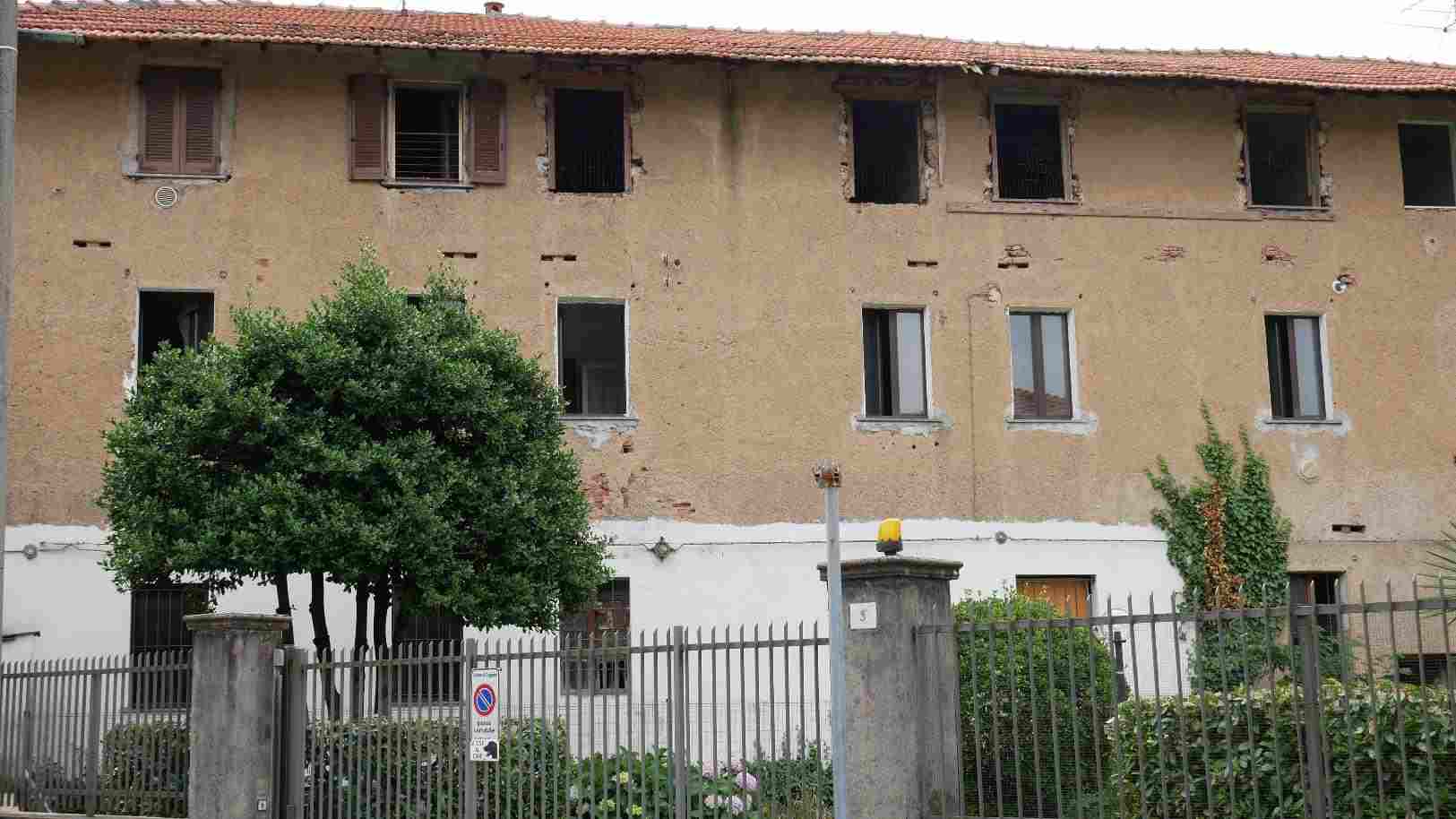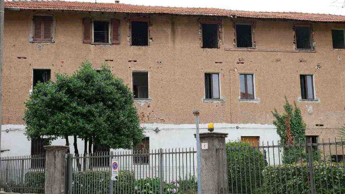 CUGGIONO (MI) - VIA VILLORESI 3/B A) appartamento piano primo: spazio a cielo aperto con copertura in parte crollata, unico vano adibito a patio totale mq 37, appartamento due locali oltre servizio, piano 1, mq 59 -B) Autorimessa piano terra mq 12