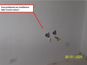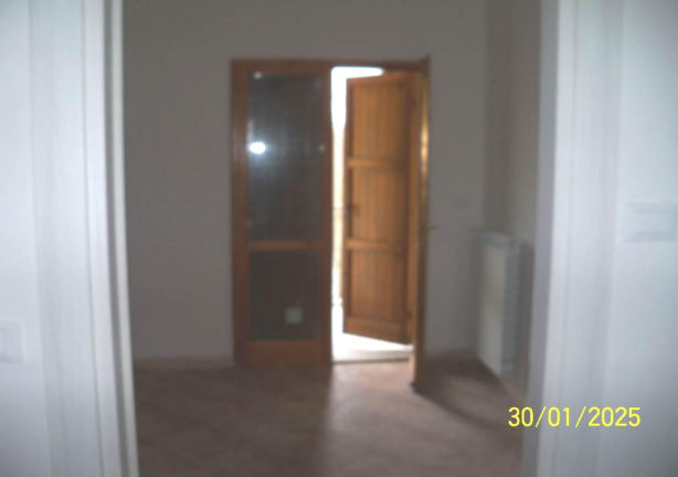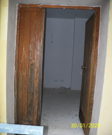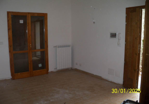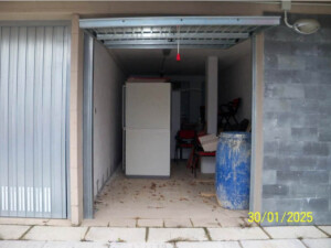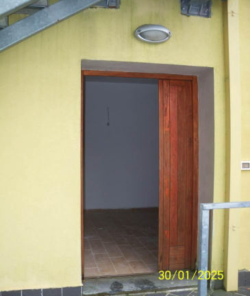 Diritto della piena proprietà di appartamento posto al piano terra (sup. 55 mq), con accesso attraverso la corte comune, composto da ingresso, cottura-soggiorno, due camere, piccolo disimpegno e bagno, con balcone accessibile sia dalla camera che dal soggiorno, ed è corredato da piccola corte esclusiva, da marciapiede esclusivo e da presella di corte a sé stante. Garage al piano seminterrato composto da un unico locale (sup. 24 mq) con porzione di corte esclusiva. Libero. Vedasi Avviso e Perizia