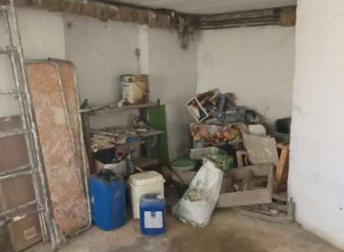 Fabbricato di testa in aderenza ad altri due immobili che si sviluppa per due piani fuori terra. L’immobileprincipale è un terra-cielo che si sviluppa al piano terreno in un locale cucina, con vano scale centrale dalquale si accede ad un locale uso dispensa. Sul retro un locale cantina, disimpegnato da un corridoio cheporta alla centrale Termica e ad un Wc, oltre che all’autorimessa. Al piano superiore troviamo una sala,una seconda cucina, un bagno e n°3 camere da letto di dimensioni ridotte.