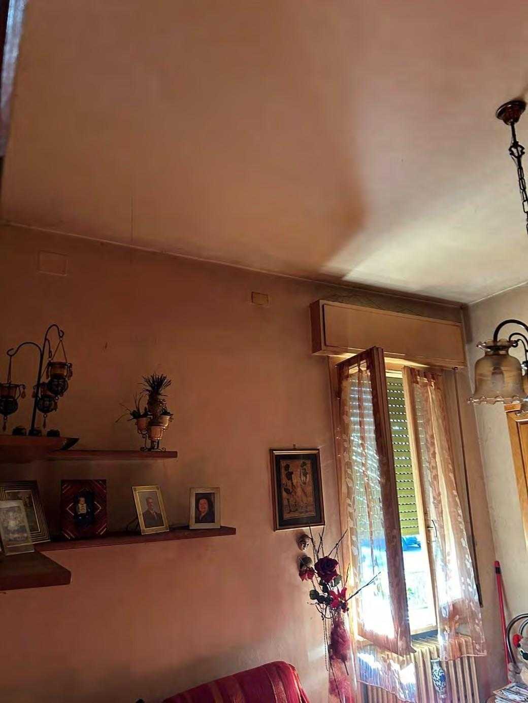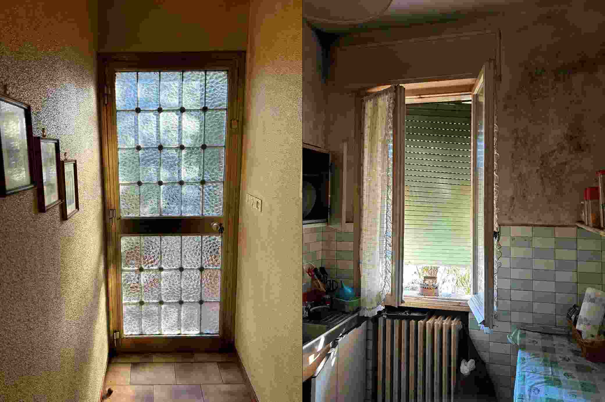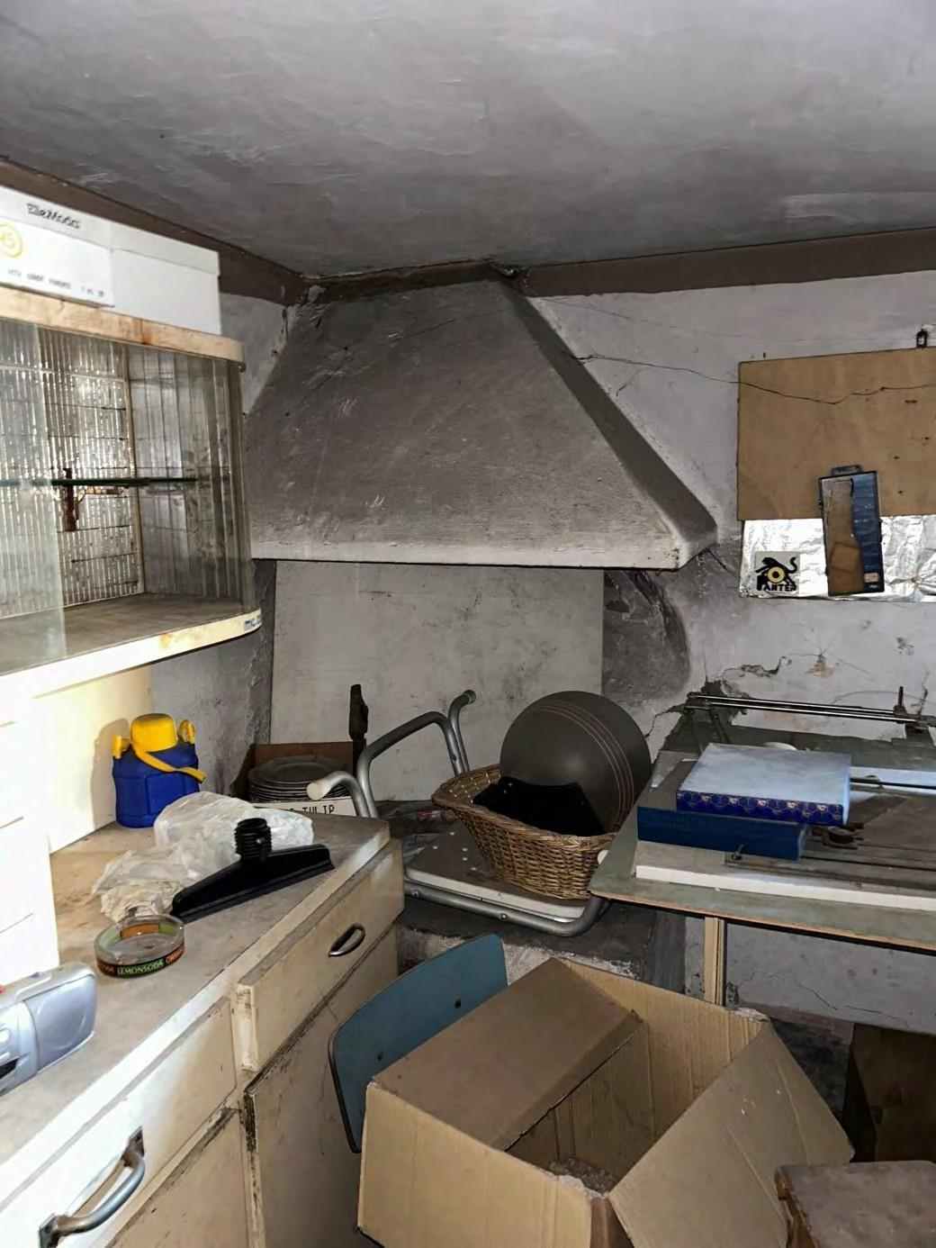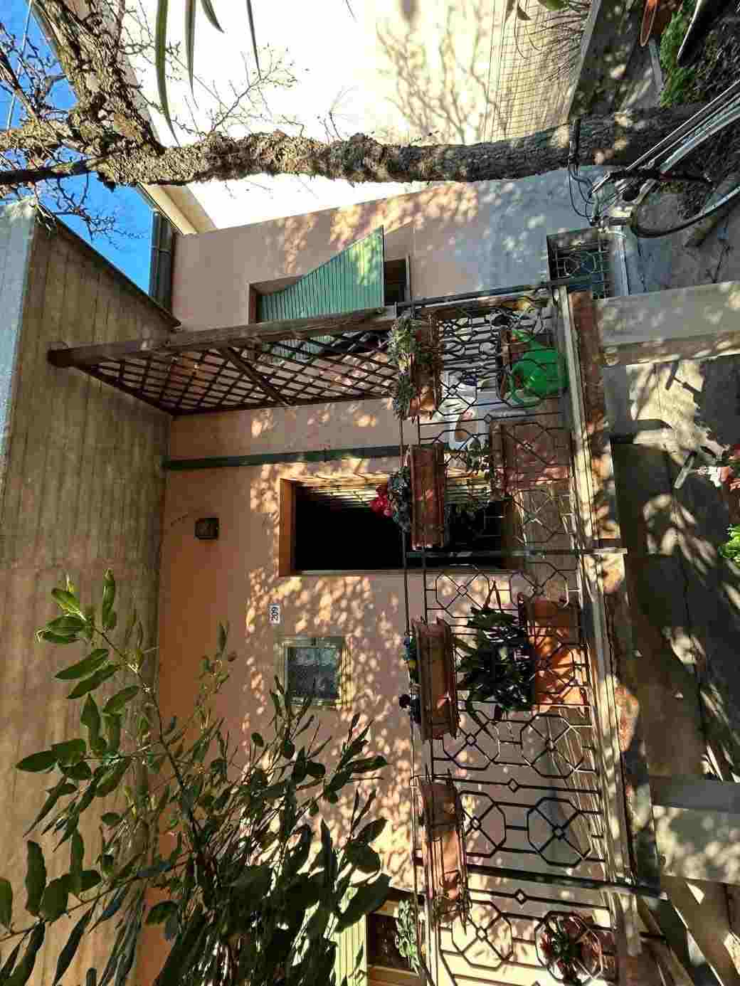1/1 di porzioni immobiliari facenti parte di fabbricato bifamiliare costituite da appartamento al piano rialzato, accessibile tramite scala esterna e ballatoio, in pessimo stato di conservazione, con annessi vani ad uso cantina e lavanderia al piano primo sottostrada, due vani ad uso garage e un vano ad uso sgombero in corpo di fabbrica staccato edificato sulla corte comune. Superficie commerciale tot. mq. 122,39. Occupato da uno dei condividenti.
