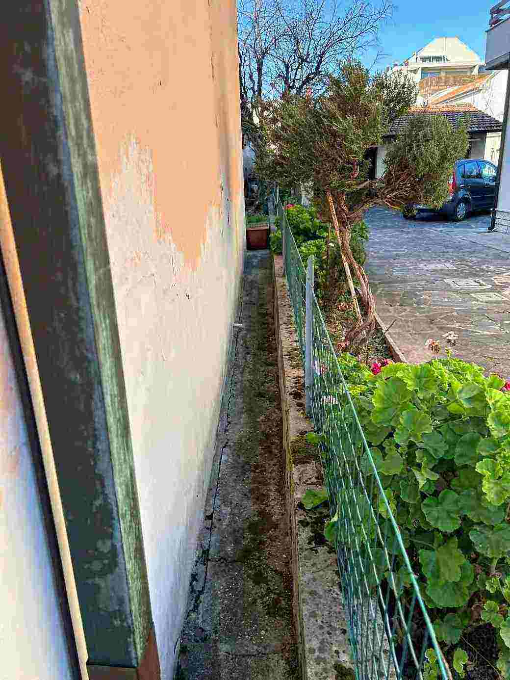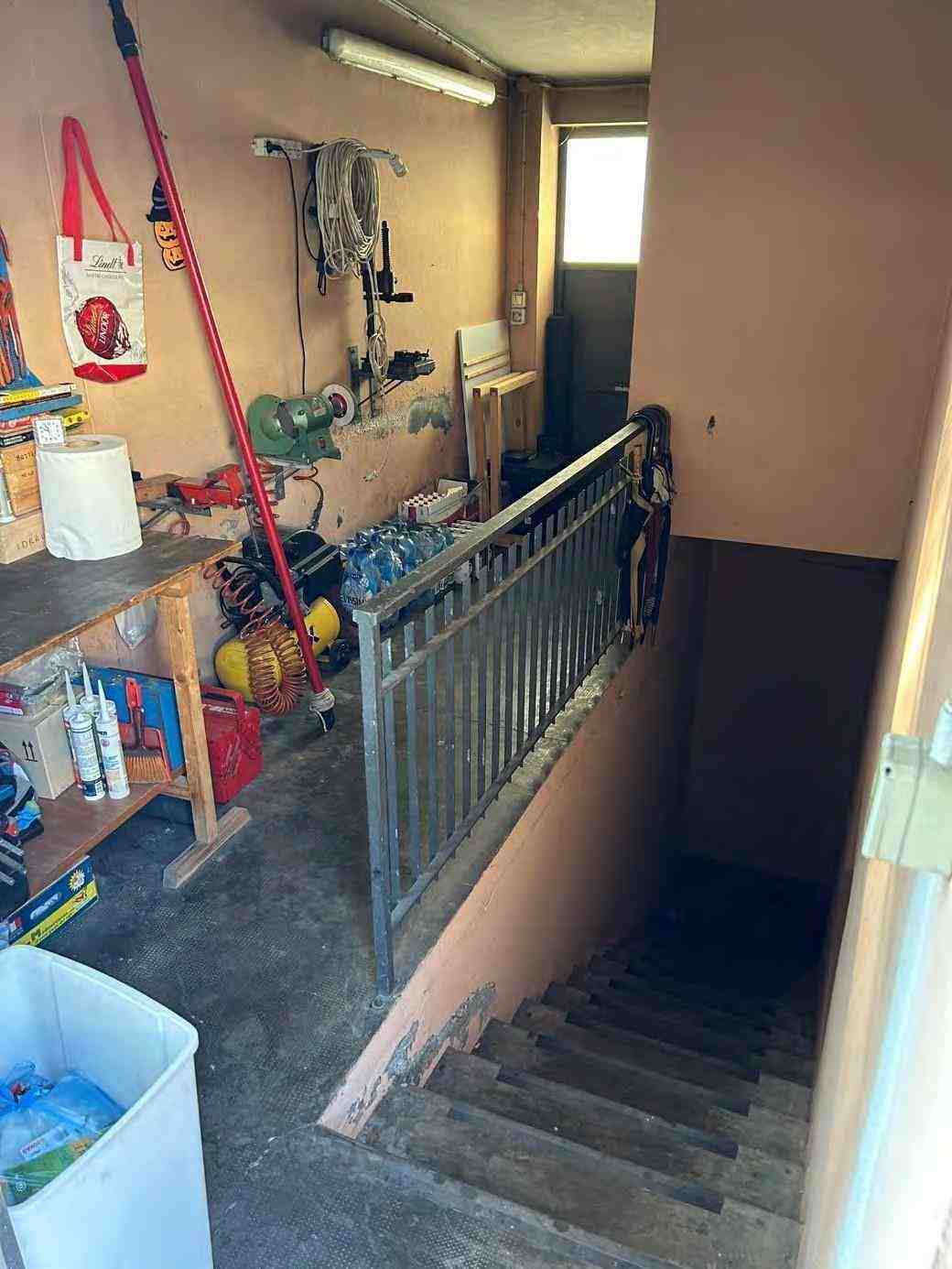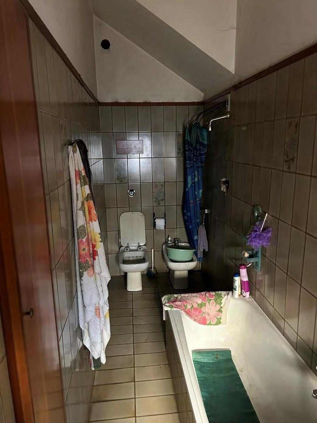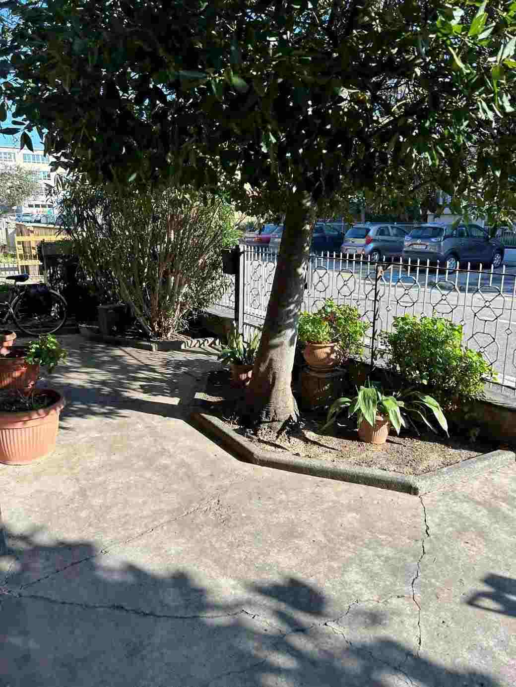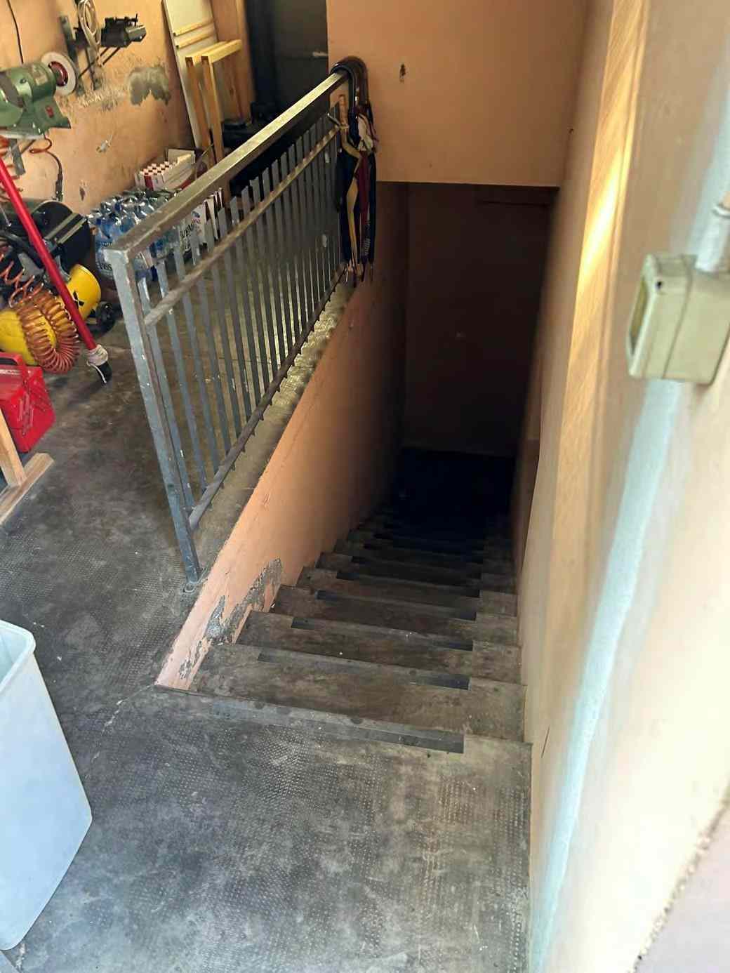 1/1 di porzioni immobiliari facenti parte di fabbricato bifamiliare costituite da appartamento al piano rialzato, accessibile tramite scala esterna e ballatoio, in pessimo stato di conservazione, con annessi vani ad uso cantina e lavanderia al piano primo sottostrada, due vani ad uso garage e un vano ad uso sgombero in corpo di fabbrica staccato edificato sulla corte comune. Superficie commerciale tot. mq. 122,39. Occupato da uno dei condividenti.