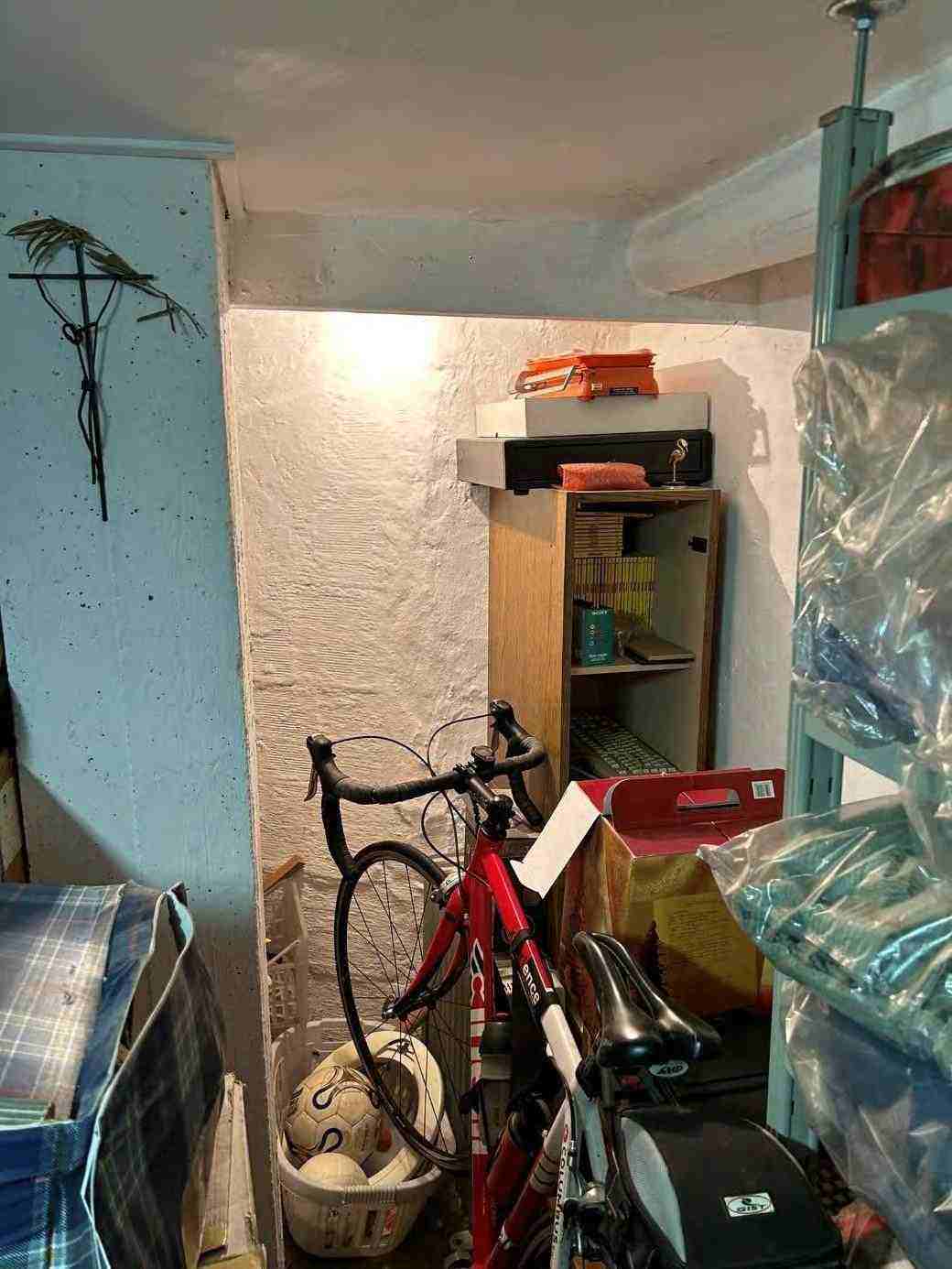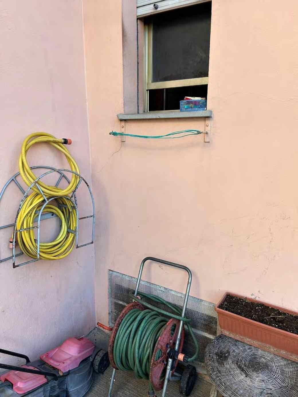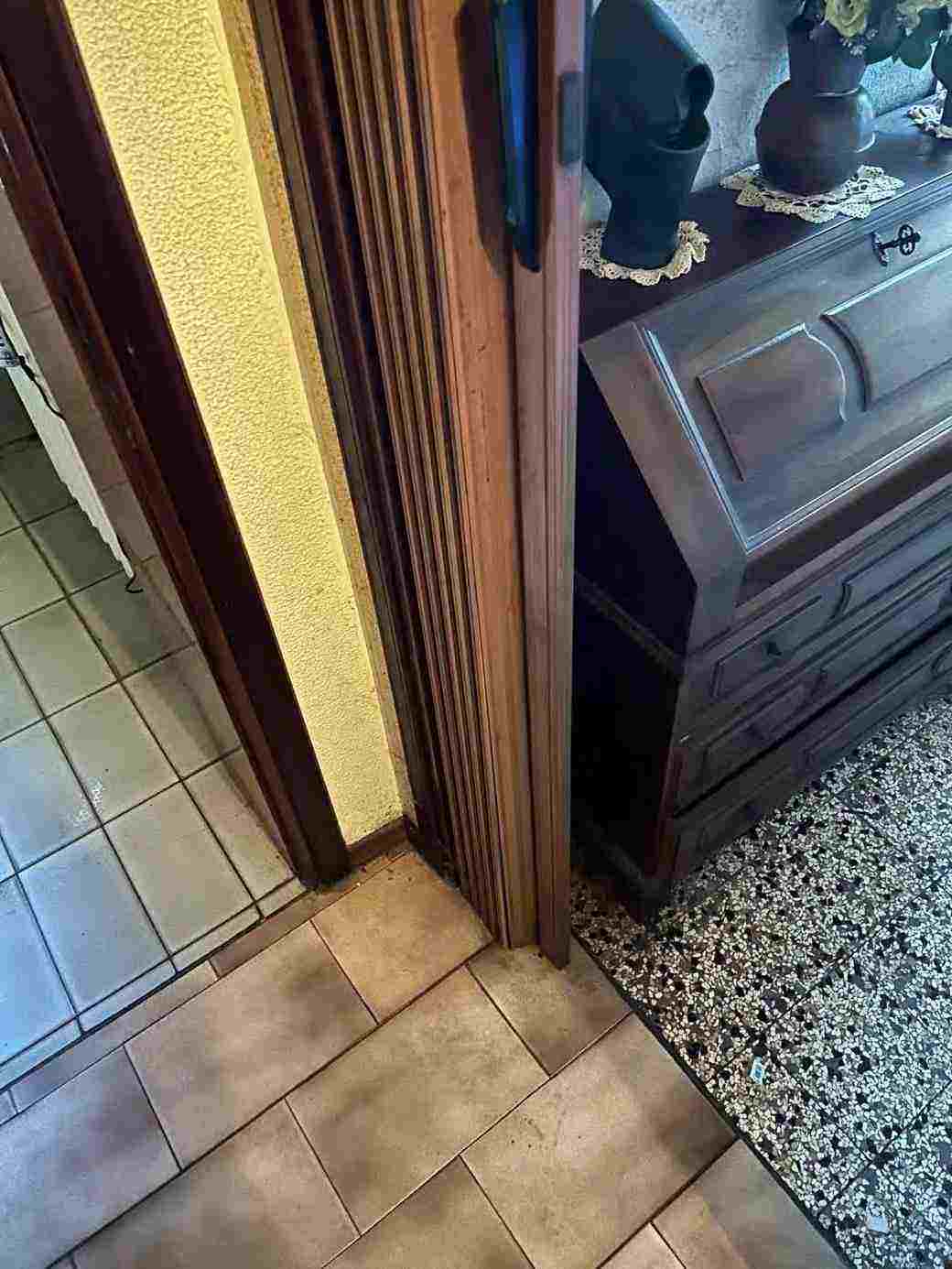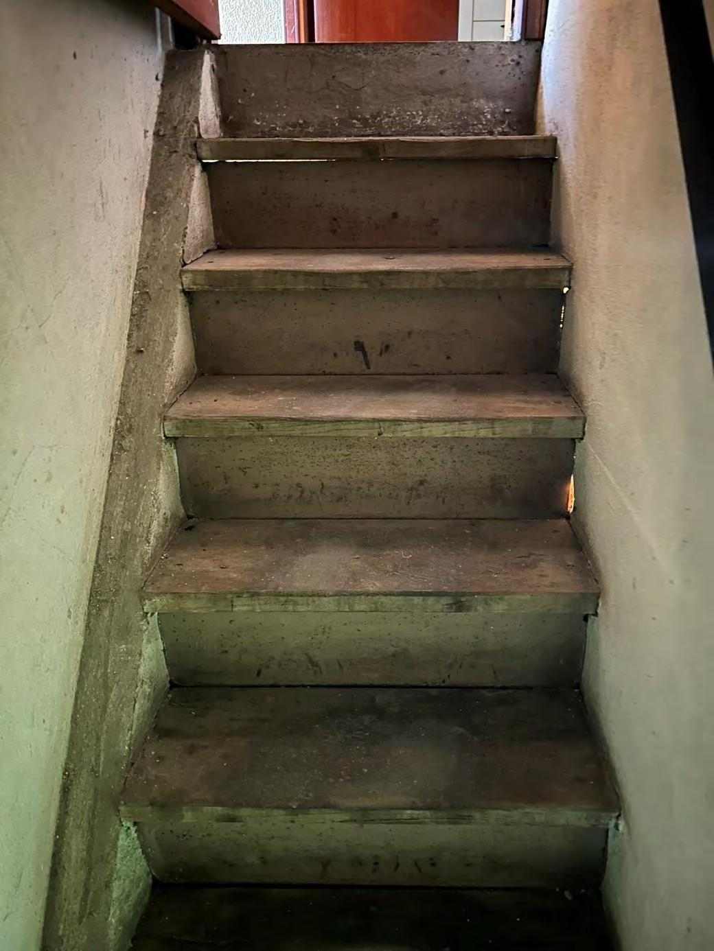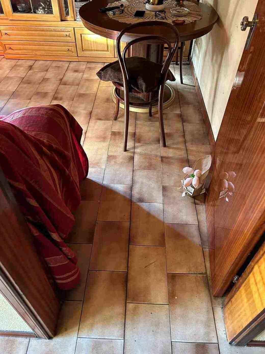 1/1 di porzioni immobiliari facenti parte di fabbricato bifamiliare costituite da appartamento al piano rialzato, accessibile tramite scala esterna e ballatoio, in pessimo stato di conservazione, con annessi vani ad uso cantina e lavanderia al piano primo sottostrada, due vani ad uso garage e un vano ad uso sgombero in corpo di fabbrica staccato edificato sulla corte comune. Superficie commerciale tot. mq. 122,39. Occupato da uno dei condividenti.
