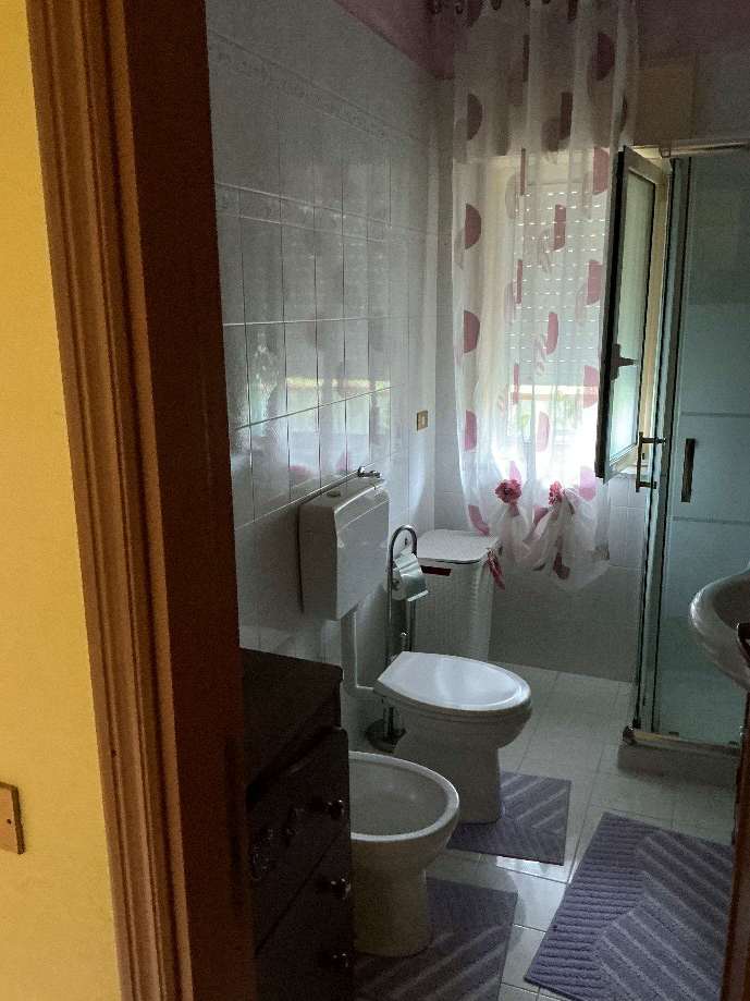 Diritto di proprietà di un immobile primo piano della palazzina B del Complesso “Le Palme”. L’appartamento risulta composto da un ampio ingresso e corridoio, un soggiorno,una cucina, due bagni e tre stanze, classe 7, consistenza 6,5 vani, superficie catastale 147mq comprese di superfici scoperte.