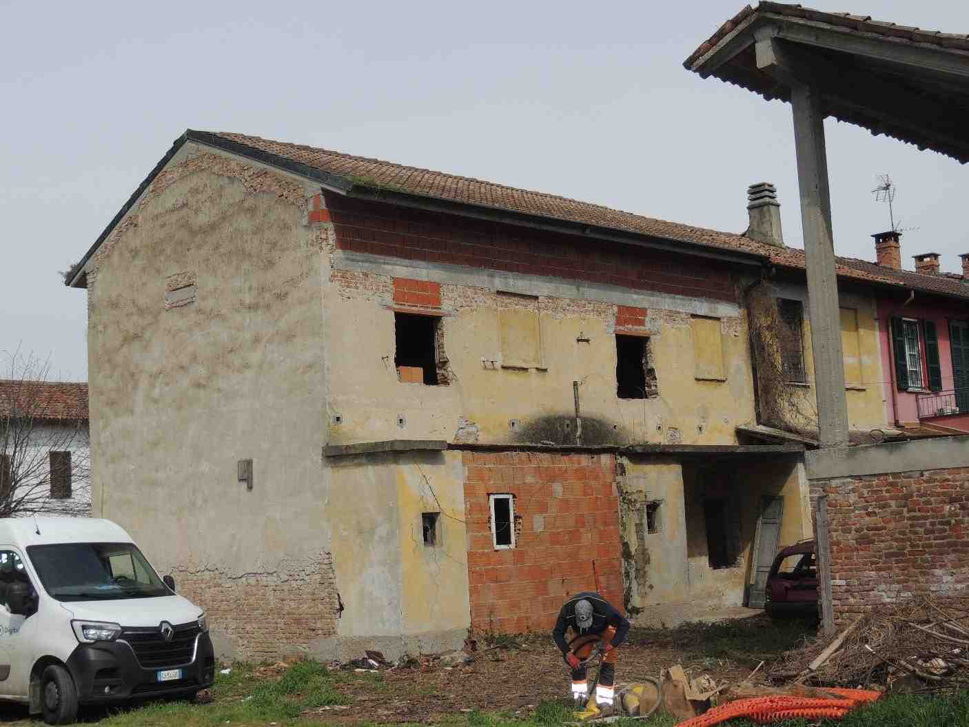 Fabbricato al rustico composto al P.T. da due vani e accessori, scala interna e al P.1° altri due vani, scala di accesso al sottotetto, edificato in epoca remota e oggetto di parziale intervento di ristrutturazione; altro corpo di fabbrica (accessorio); area di corte e piccoli sedimi.
