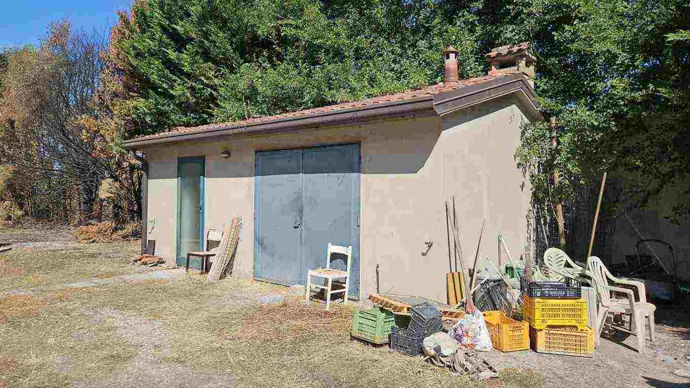 Piena proprietà di villetta indipendente a due piani fuori terra, con annesso un piccolo fabbricato ad uso ripostiglio e lavanderia. La villetta è composta al piano terra da ingresso, salone, bagno e cucina; al piano primo, raggiungibile mediante scale interne, da due camere da letto. occupato senza titolo.
