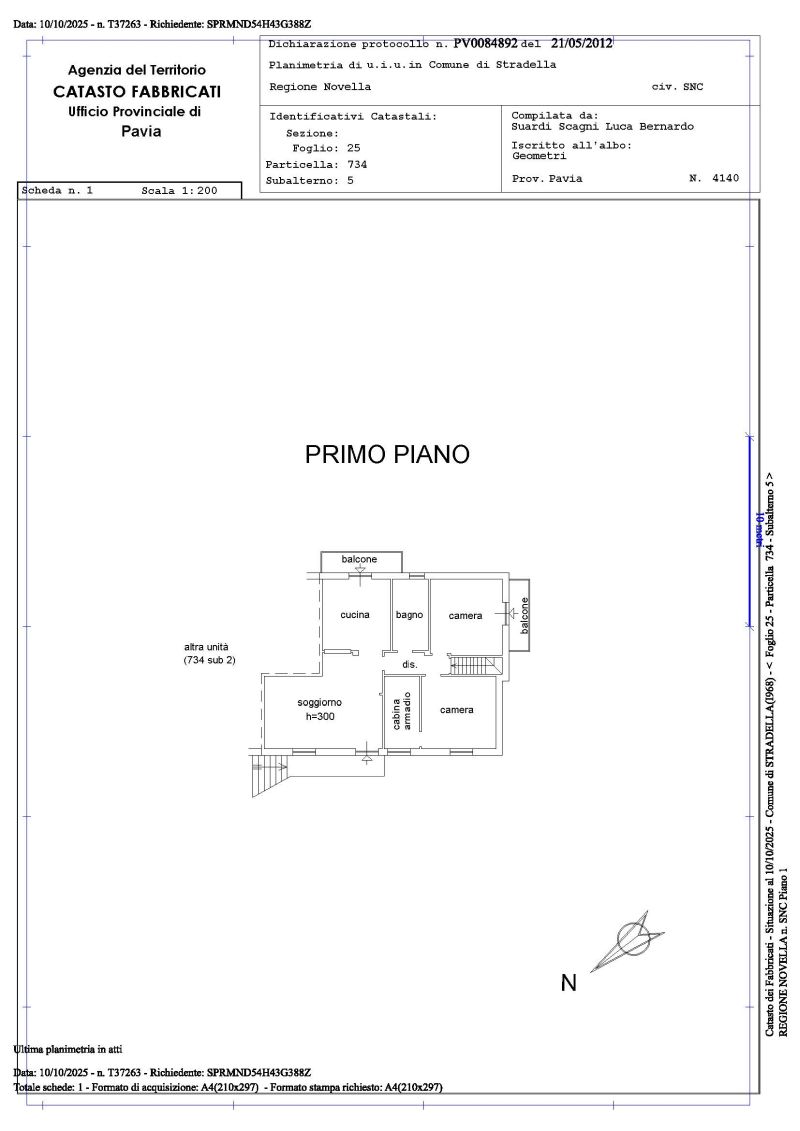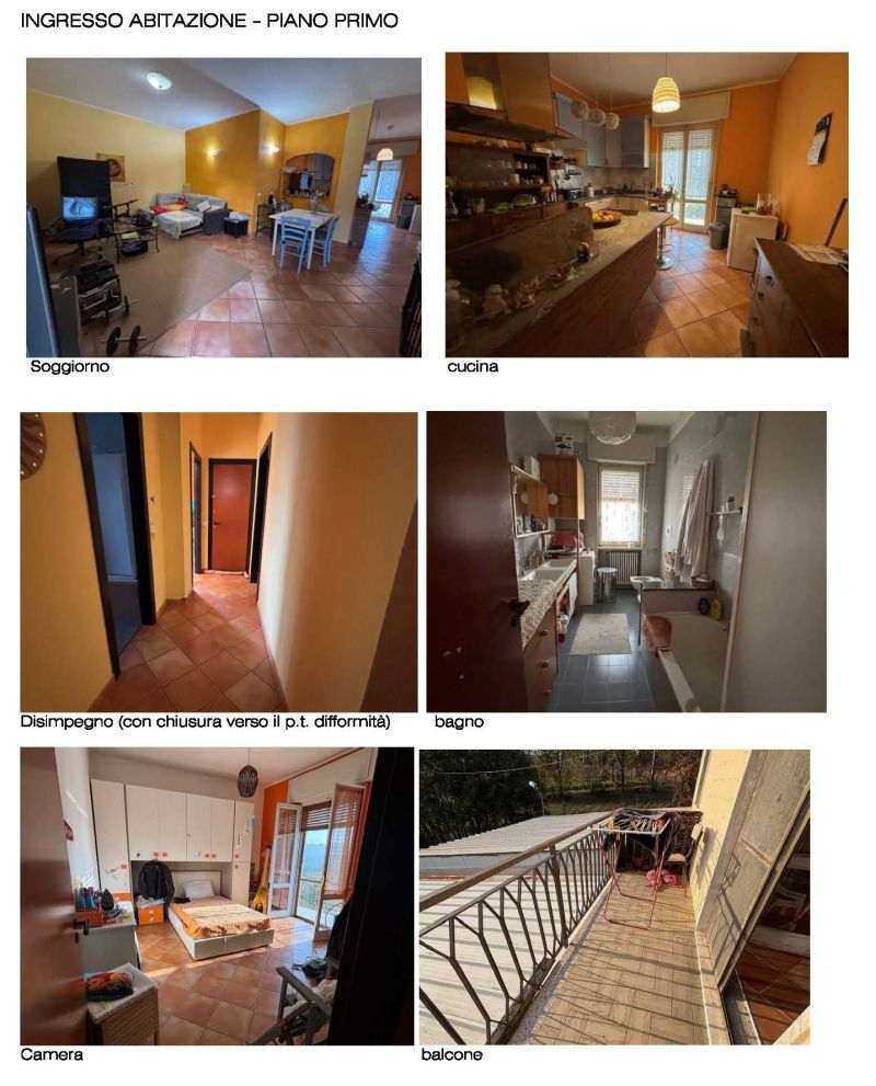 L’unità immobiliare interessata risulta inserita in un unico fabbricato composto da due unità immobiliari ed occupa l’intero piano primo, ad esclusione della scala interna posta a servizio dell’unità al piano terra. E’ un’abitazione con accesso nel soggiorno, attraverso scala e ballatoio esterni, cucina con balcone, disimpegno, bagno, camera con balcone e altra camera con cabina armadio.