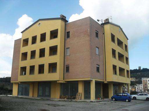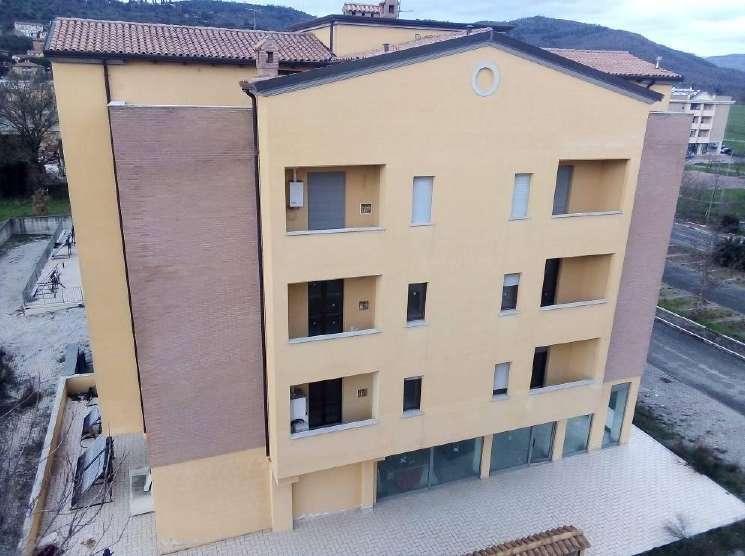 Diritti di intera piena proprietà di fabbricato sito nel Comune di Magione (PG), Via dei Pioppi n. 27, a prevalente destinazione abitativa, non ancora ultimato, entro stante a terreno, coperto dalla costruzione e scoperto pertinenziale di catastali mq. 1.196, comprendente:- n. 9 autorimesse e n. 1 magazzino;- n. 1 negozio al piano terra;- n. 3 appartamenti al piano 1°;- n. 3 appartamenti al piano 2°;- n. 3 appartamenti al piano 3°;- n. 2 soffitte, con terrazze, al piano 4°, da demolire.