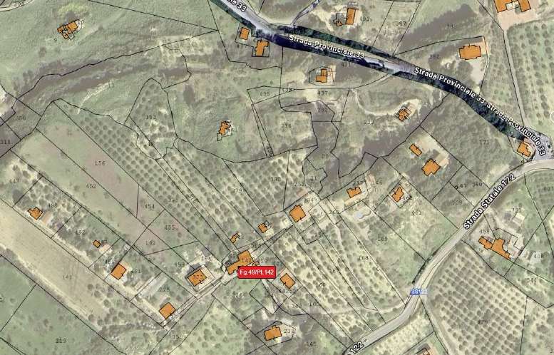 Garage posto al piano terra, Piano T, cat. C/2; Fabbricato urbano costituito da tre vani disposti tra il piano terra e primo piano, cat. A/4; Appezzamento di terreno con insistente fabbricato collabente consistente in una vasca di raccolta acqua cat. F/2; B) ed il terreno distinto al foglio 49, particelle: 140, Pascolo, classe 1, di are 04 centiare 00; 153, Pascolo, classe 1, di are 19 centiare 60,; 376 Seminativo Arborato, classe 1 di are 09 are centiare 50; 511, Vigneto, classe 1 di are 18 centiare 68.