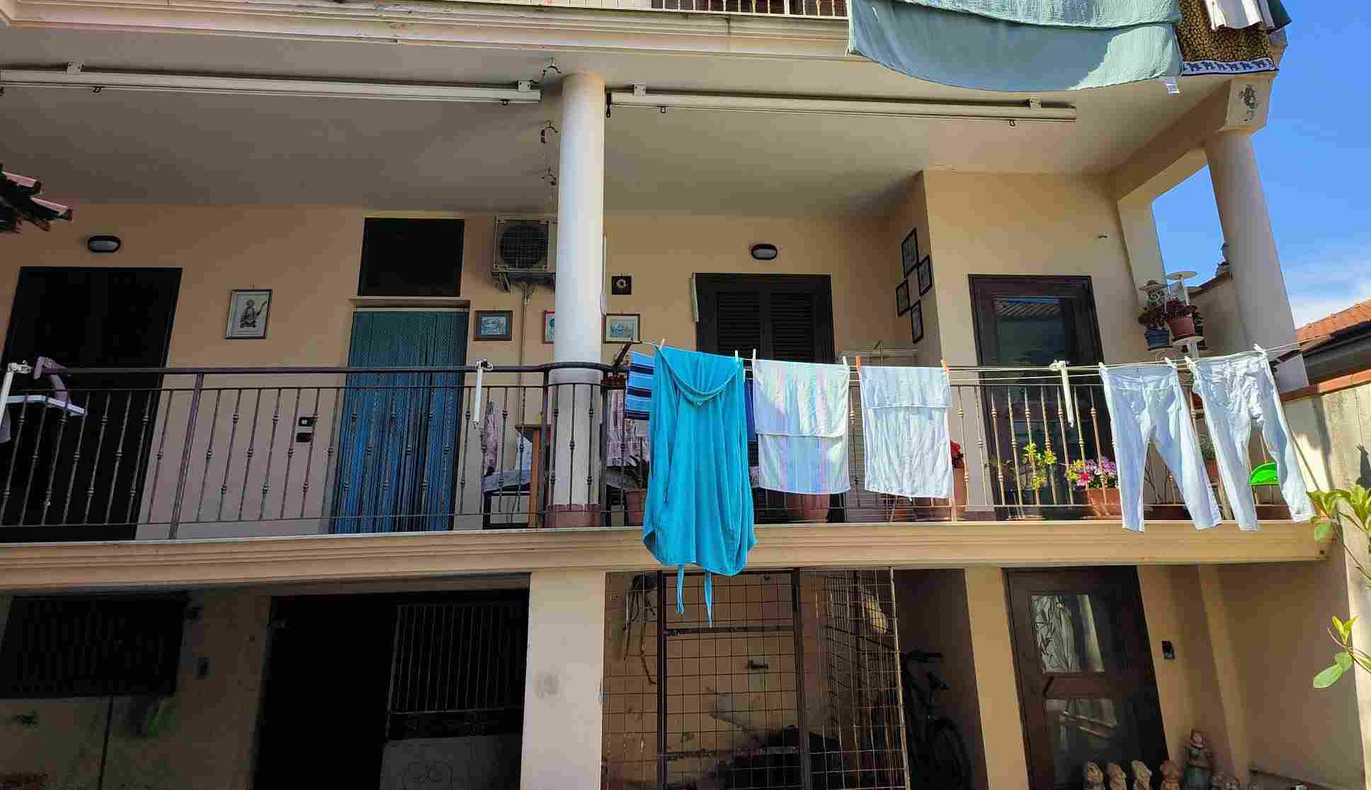 Piano rialzato, appartamento composto da soggiorno, cucina, corridoio-disimpegno, n.3 wc, n. 3 camere, n. 2 balconi.Piano seminterrato destinato a deposito e/o autorimessa, accessibile dall’interno del fabbricato, dall’area comune. Tale locale non risulta fisicamente separato da muro divisorio, ma costituisce un unico ambiente in continuità con altra porzione di proprietà di terzi, con la quale condivide l’uso dello spazio.