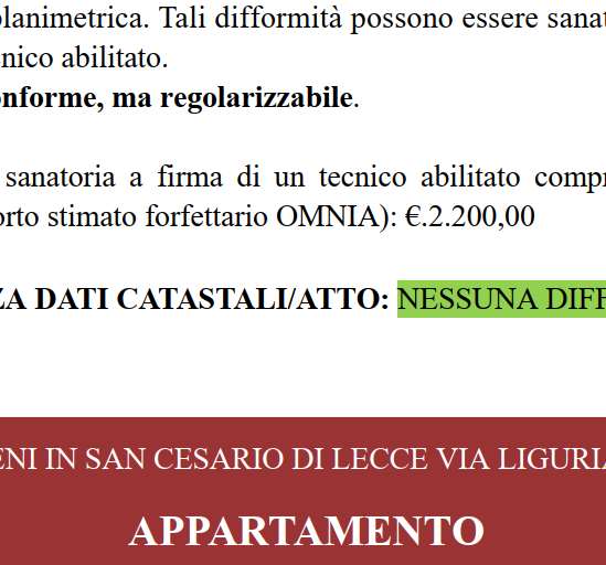 Appartamento in San Cesario di Lecce posto in zona semicentrale, mq 110, 7 vani oltre un locale deposito al piano terra di circa 4,5 mq