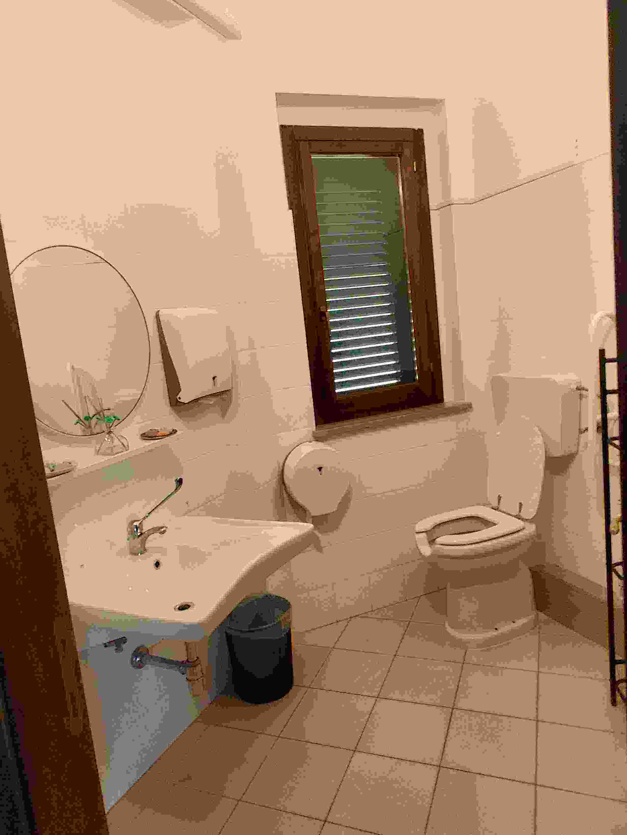 Locale commerciale (Sub. 1) posto al piano terra della superficie catastale di Mq. 100,00 circa, attualmente destinato a bar, costituito da sala, bagno, sala giochi, bagno personale, e portico della superficie di Mq. 21,00 circa, area in uso esclusiva destinata a parcheggio della superficie di Mq. 44,00 circa; Il locale risulta non conforme allo stato autorizzato ed accatastato per la non realizzazione dell’antibagno nel bagno personale. L’immobile si presenta in uno stato conservativo buono