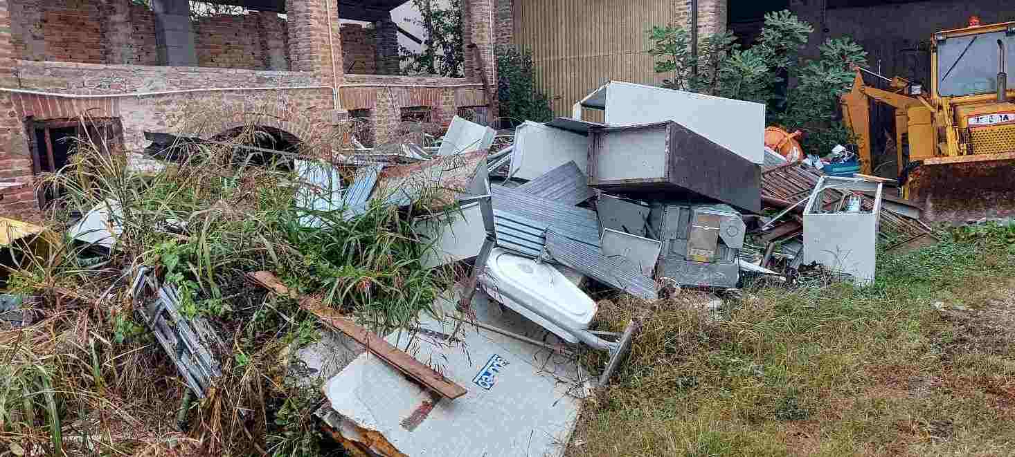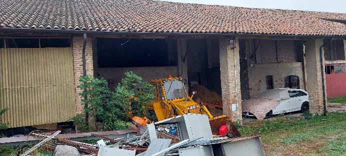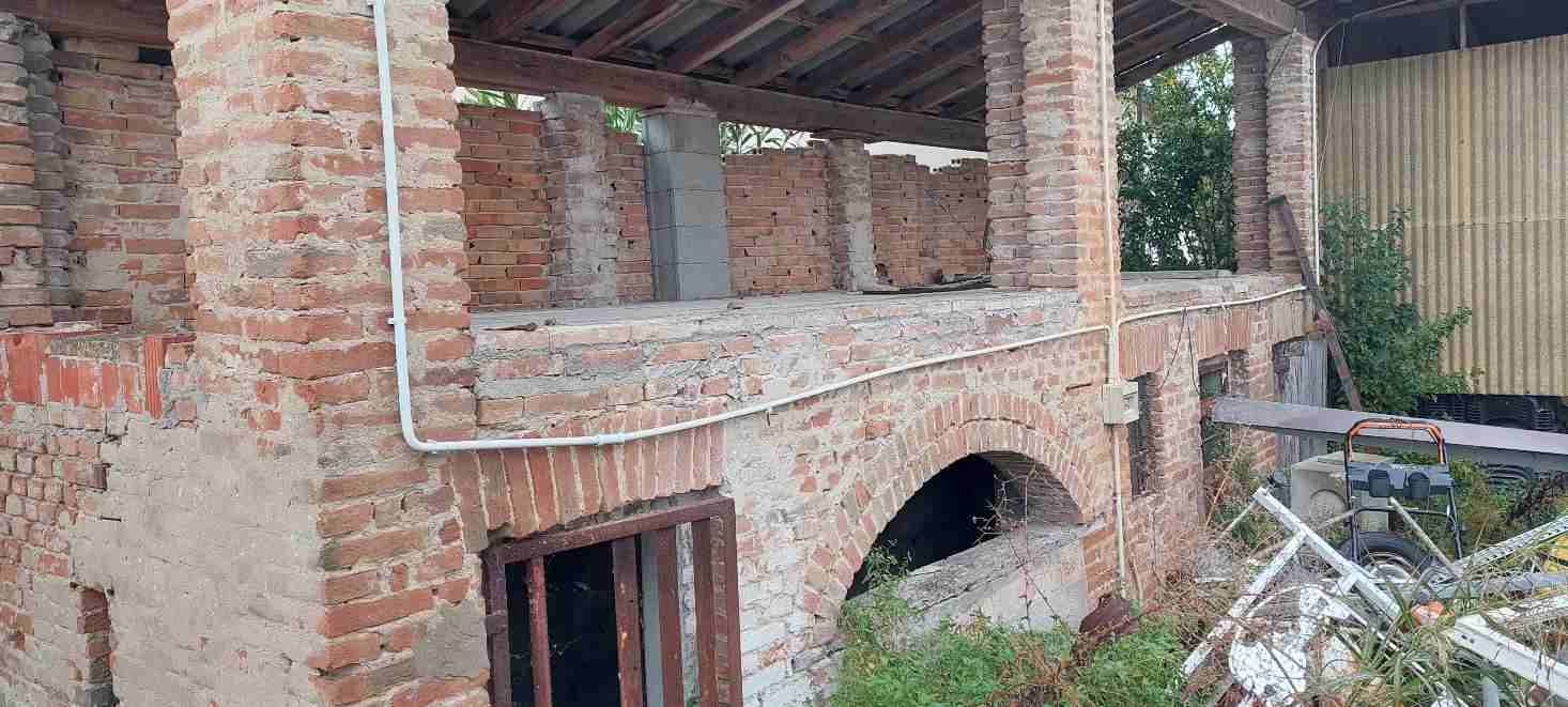 Fabbricato ad uso deposito-porticato con annessa area pertinenziale composto al piano terra, da tre locali di deposito con annessa tettoia e due solai al piano primo, cui si accede mediante scala in appoggio. All’esterno, in corpo distaccato vi è un ulteriore deposito con sovrastante solaio. Completa il lotto l’area esclusiva su cui vi erano altri due locali di deposito, ormai crollati.