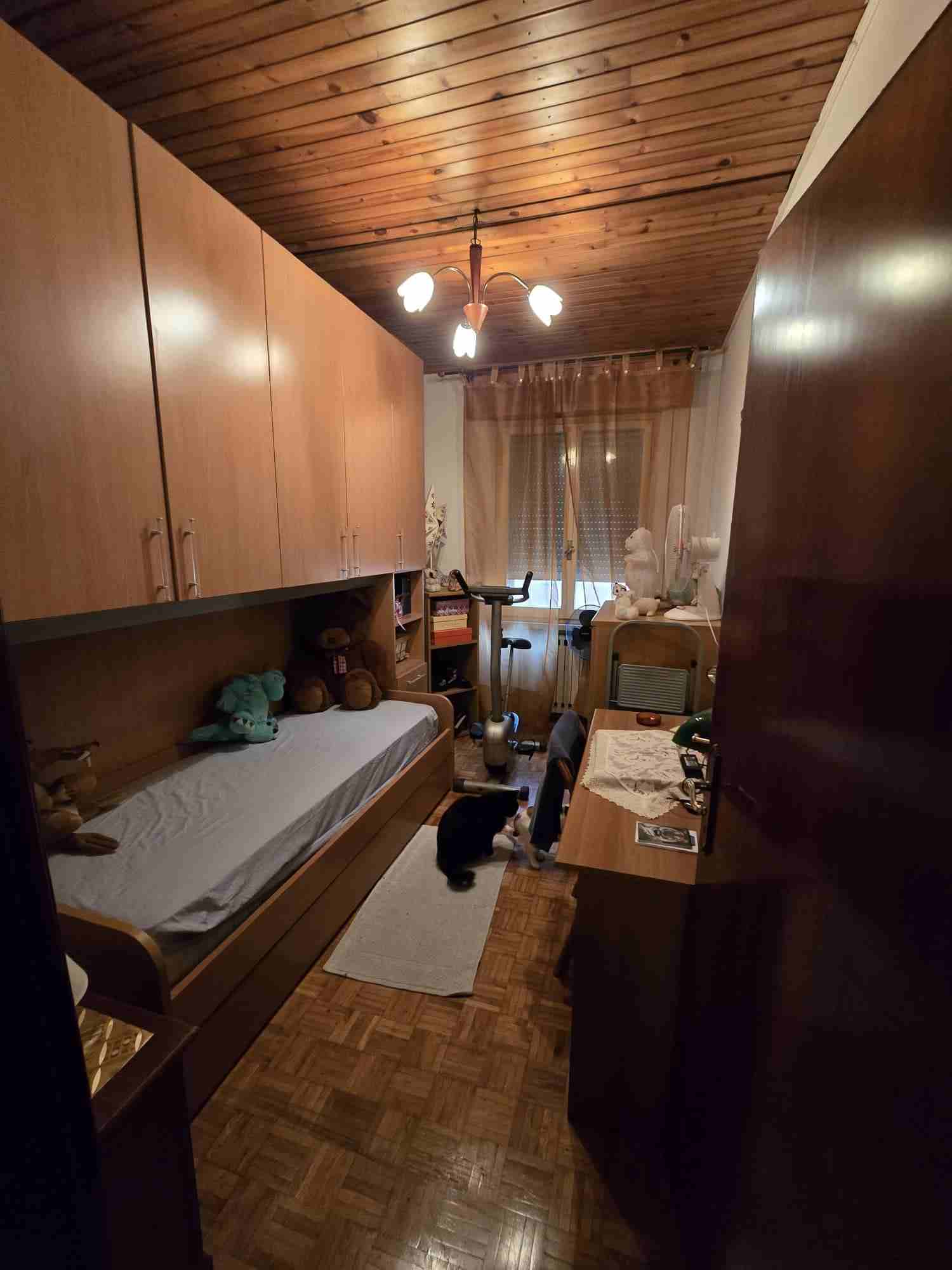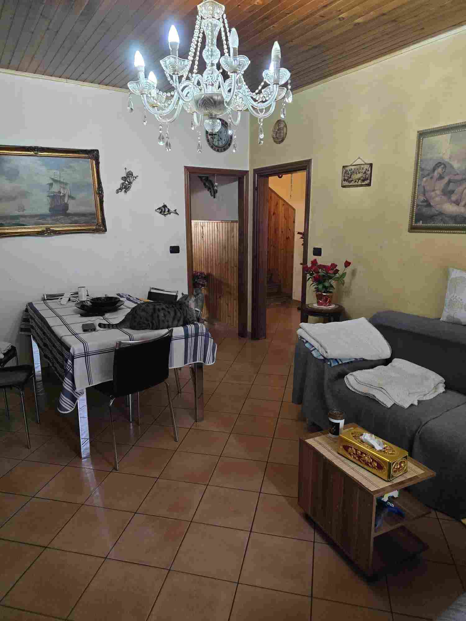 Unità immobiliare di civile abitazione, disposta sui piani terra, primo e sottotetto, con corte e garage al piano terra, e precisamente:-appartamento composto, al piano terra, da ingresso, sala, bagno, cucina e retro; al piano primo, da corridoio, terrazzo con tettoia, tre camere; al piano sottotetto, da w.c. e soffitta;-garage al piano terra della superficie catastale di metri quadrati dodici (mq. 12);