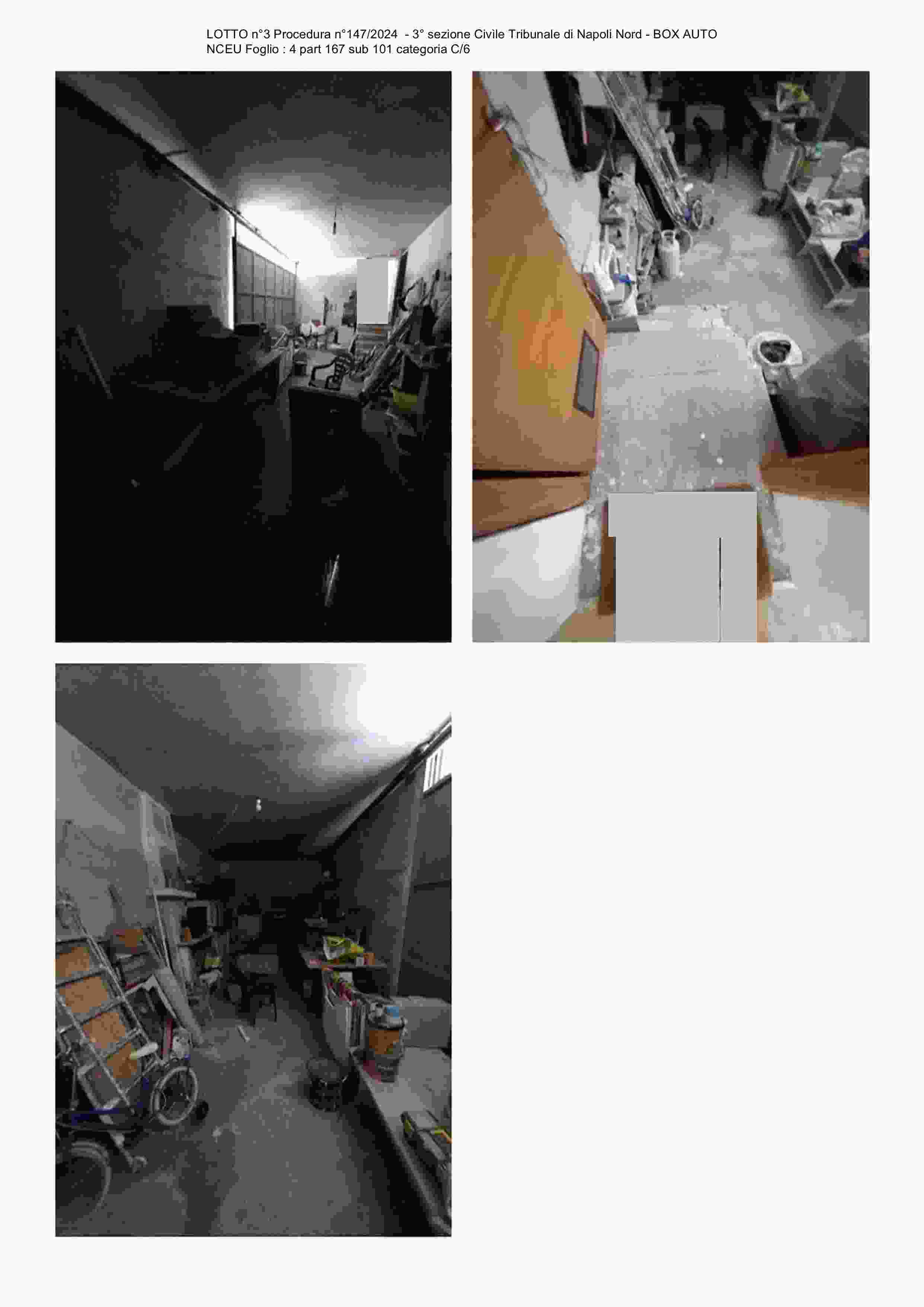 LOTTO n°3: piena ed intera proprietà di locale autorimessa sito nel Comune di Frattaminore, alla Via Viggiano n. 19, ubicato al piano terra in un fabbricato a corte di due piani fuori terra. La superficie netta calpestabile è di 37 mq;