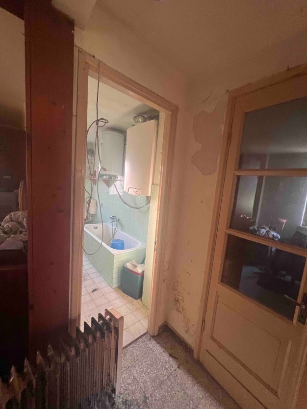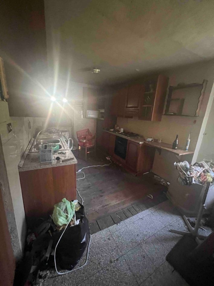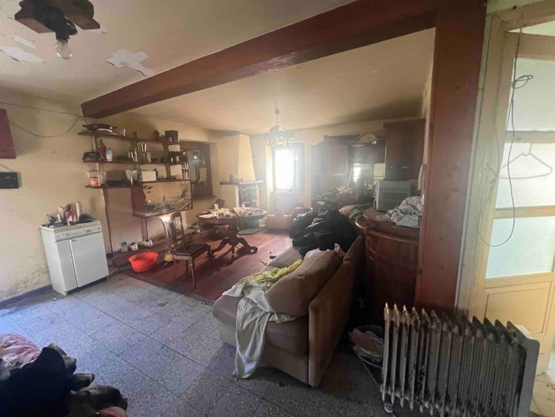 Appartamento al piano primo della superficie commerciale di circa mq 106,63 al quale si accede da scala esterna su balcone ed è composto da zona ingresso zona giorno, due camere, cucina abitabile e bagno.L’immobile si presenta in stato di totale abbandono, privo di impianti (elettrico, idrico, riscaldamento, fognario) ed ingombro di rifiuti e materiali abbandonati