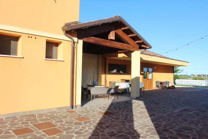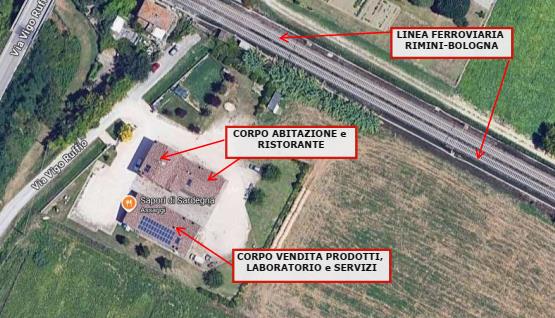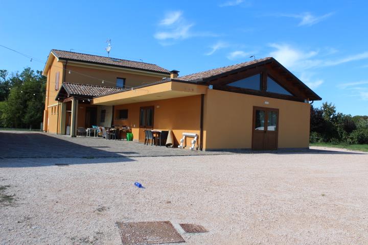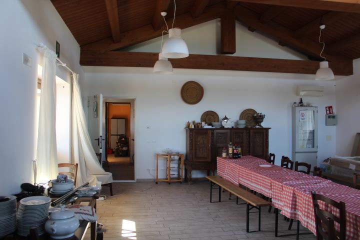 Complesso immobiliare agrituristico composto da: abitazione al piano terra e primo (composto da ingresso, disimpegno, cucina-soggiorno-pranzo, 4 camere, 2 bagni) con ristorante al piano terra con relativi servizi e corpo staccato adibito a vendita prodotti con laboratorio con servizi e uffici, oltre a terreno agricolo. Abitazione (sub. 5) locata con contratto opponibile fino al 28/02/2028; punto vendita (sub. 6) occupato con titolo NON opponibile alla procedura.