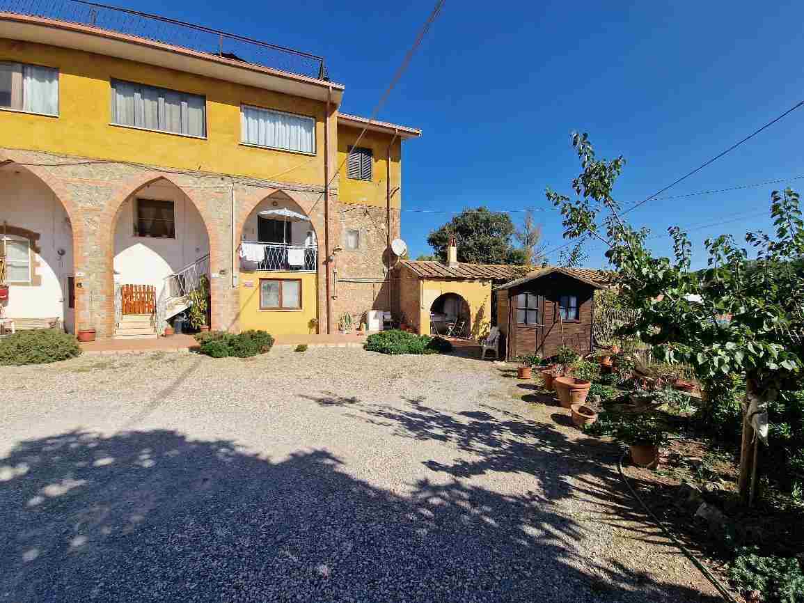 Compendio immobiliare composto da unità ad uso abitativo al piano terra, unità ad uso abitativo al piano primo, unità immobiliare ad uso magazzino e area urbana esterna agli accessi alle tre unità immobiliari e terreni per lo più di qualità seminativo.