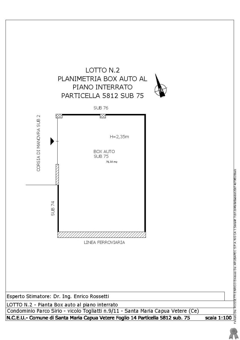 Piena ed intera proprietà di box auto al piano interrato appartenente al Condominio Parco Sirio ubicato in Santa Maria Capua Vetere (Ce) al vicolo Togliatti n.9/11