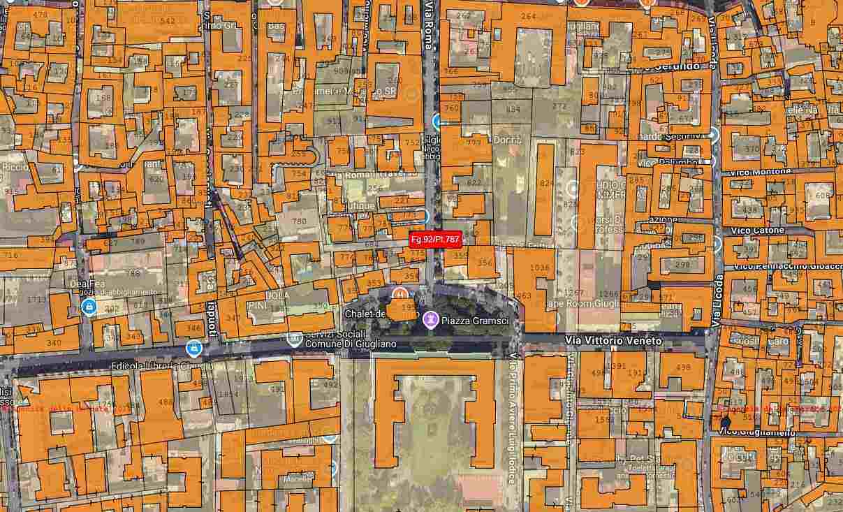 Diritto di usufrutto di un appartamento al piano secondo, con i proporzionali diritti di comproprietà sulle parti comuni del fabbricato, in Giugliano in Campania (Na) , traversa seconda di Via Roma, 1; l'appartamento si compone di soggiorno, una cucina, una sala con camino, uno studio, tre camere da letto, tre wc e un vano adibito a ripostiglio, oltre al disimpegno; fruisce di un balcone prospiciente via Roma e un balcone prospiciente la traversa seconda di via Roma.