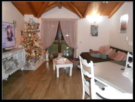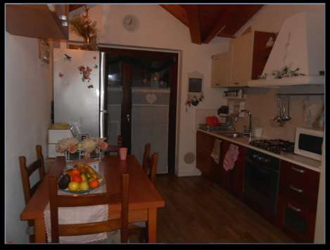 Appartamento composto da quattro locali con angolo cottura oltre a servizi al piano secondo, con pertineziale box ad uso autorimessa