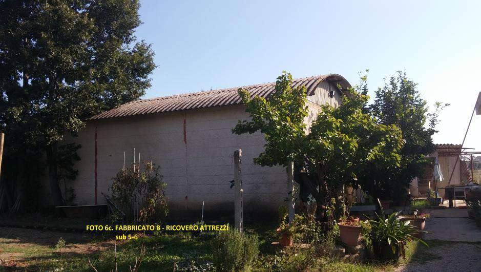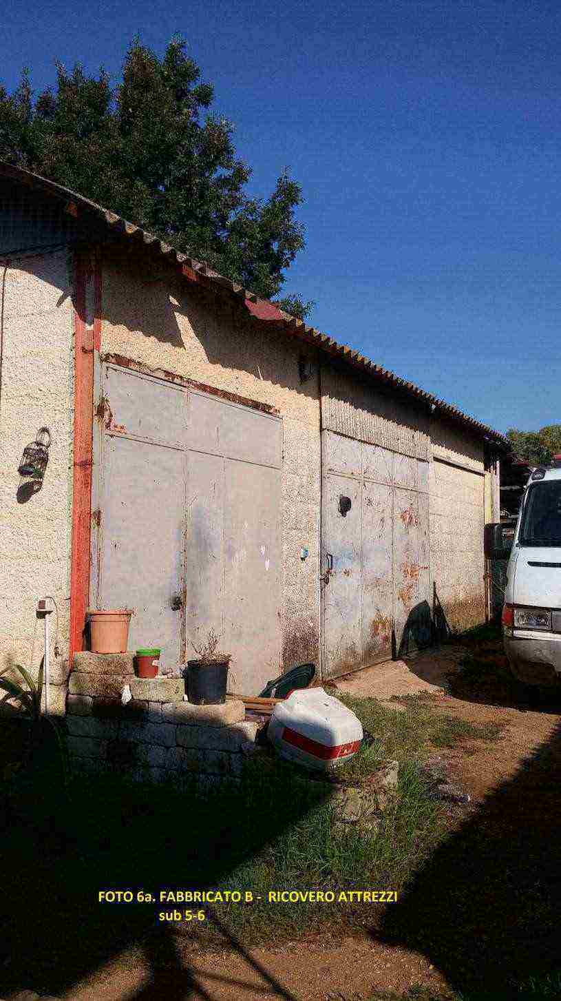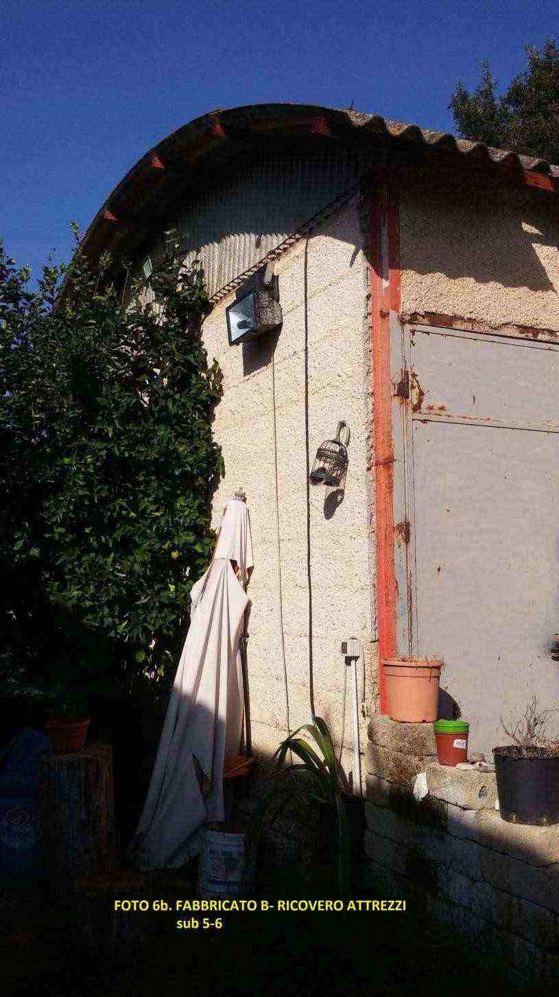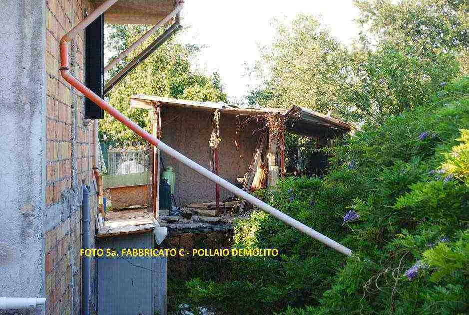 Piena proprietà di un fabbricato composto da n. 5 beni, nello specifico il bene n. 1 è un manufatto al piano fuori terra composto da cucina, soggiorno con antistante terrazzo, tre camere da letto, un bagno e un corridoio, il n. 2 è un seminterrato sottostante il fabbricato A e utilizzato come deposito, parte di esso è accorpato ad un manufatto abusivo. Il bene n. 3 è integralmente demolito in occasione della realizzazione delle opere abusive. I beni n. 4 e 5 sono manufatti fuori terra adibiti a magazzino.