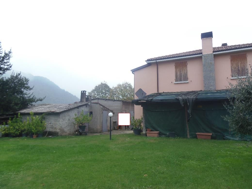 Nuda proprietà (è riconosciuto un diritto di abitazione) per l’intero di fabbricato ad uso abitazione indipendente con autorimessa e proservizi in corpo staccato - Classe energetica “G”. Occupato dall’esecutato con diritto di abitazione.