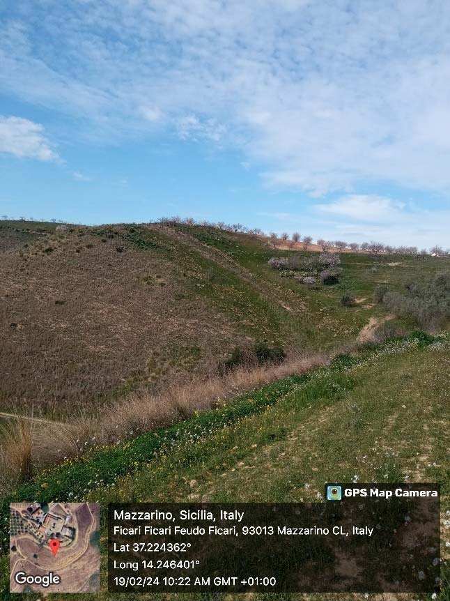 Piena proprietà appezzamenti di terreno in Mazzarino (CL), c.da Ficari Sottano, superficie ha 3.81.84, in catasto al foglio 181 - p.lla 52, vigneto, classe 02, mq. 8.200; mandorleto, classe 02, mq. 3.680; - p.lla 147, vigneto, classe 02, mq. 734; seminativo, classe 04, mq. 8.432; - p.lla 148, vigneto, classe 02, mq. 3.300; seminativo, classe 04, mq. 1.224; - p.lla 51, seminativo, classe 04, mq. 4.840; - p.lla 152, vigneto, classe 02, mq. 5.183; uliveto, classe 02, mq. 2.591.