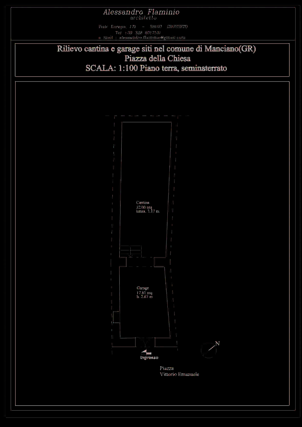 Vano magazzino al piano terra e vano cantina al piano seminterrato, comunicanti tra loro, avente accesso dal civico n. 4 di Piazza della Chiesa, consistenza catastale mq 47, censito al catasto fabb...