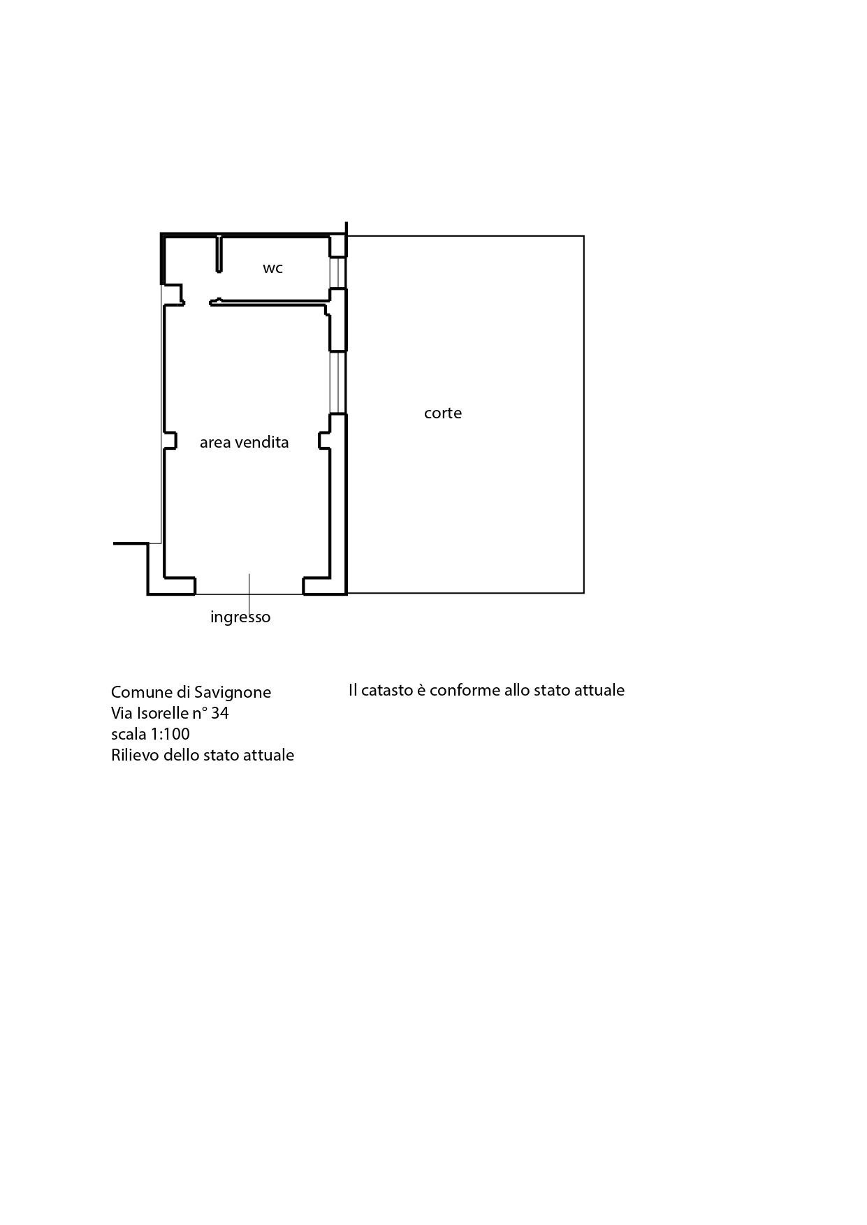 Comune di Savignone (GE), quota di proprietà pari al 100% di locale commerciale sito in Via Isorelle 34, composto dal locale principale, un disimpegno, un servizio igienico, con annessi posto auto e terrazzo, per una superficie commerciale lorda di 56,80 mq.