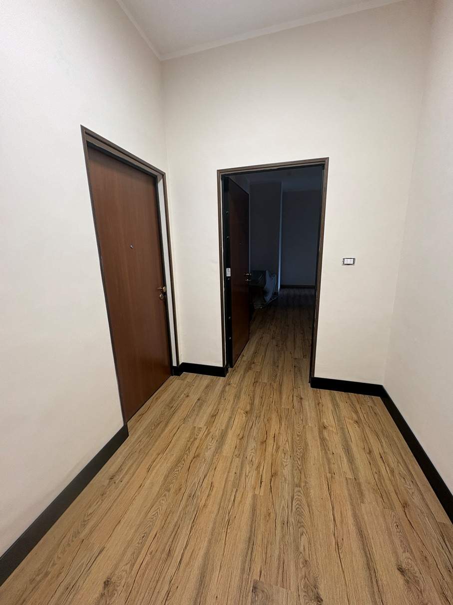 Piena ed intera proprietà di appartamento al piano primo composto da un ingresso che immette in un disimpegno comune che consente l’accesso a due unità indipendenti collegate esternamente da un balcone e con impianti uniti: a) la prima unità è costituita da tre camere da letto, wc e disimpegno; b) la seconda è costituita da soggiorno, cucina, camerada letto, wc e piccolo disimpegno.