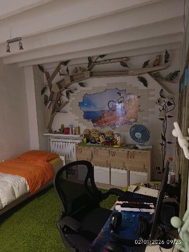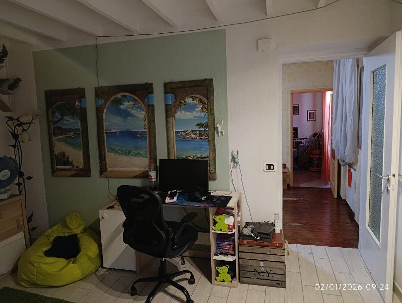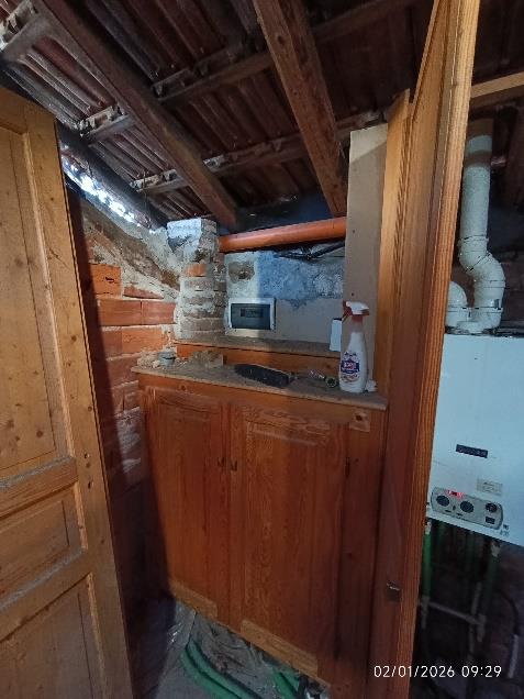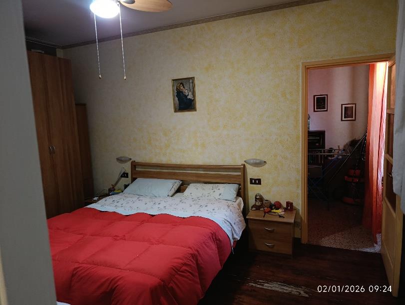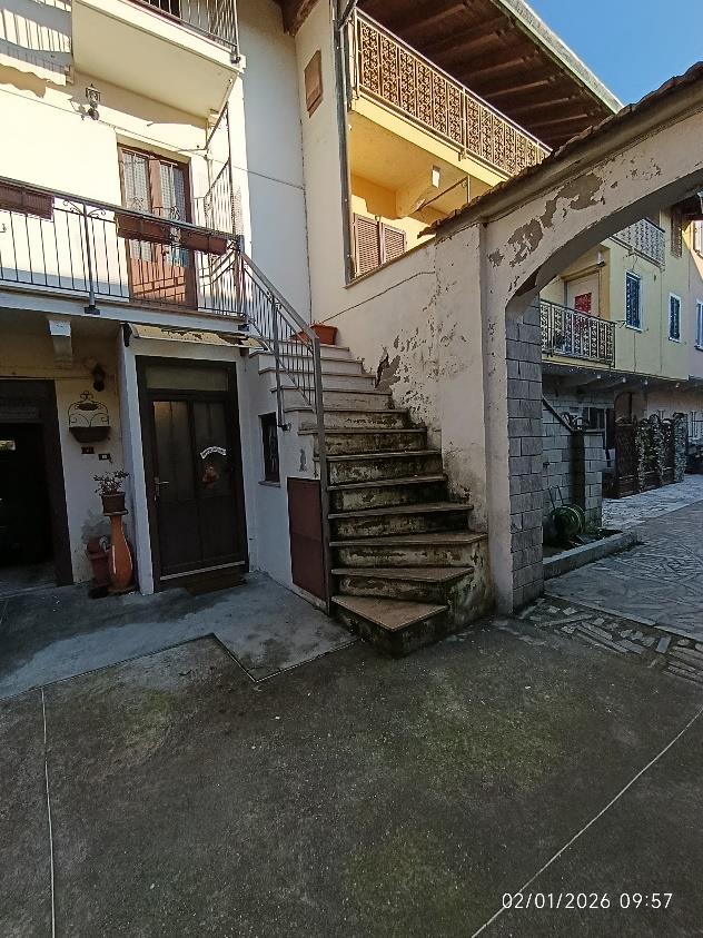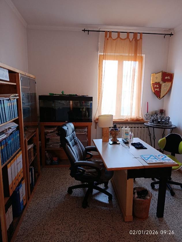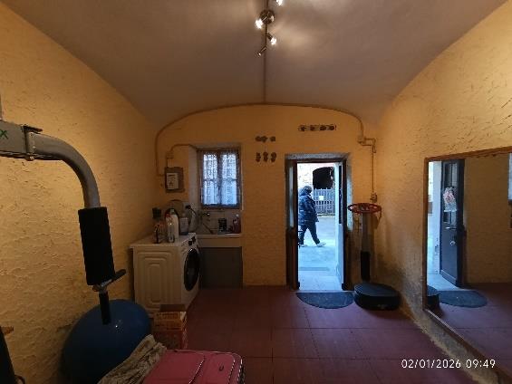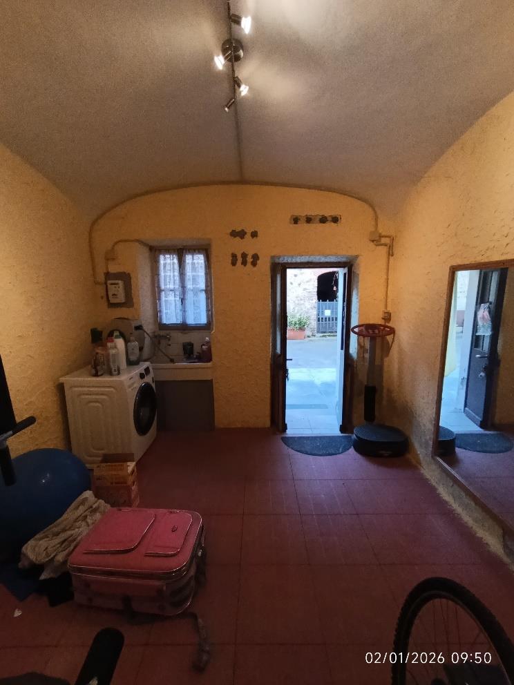 Piena proprietà per la quota di 1000/1000 di n. 3 unità immobiliari. L’abitazione indipendente è costituita da 2 piani fuori terra (e sottotetto) e composta: al PT ingresso, soggiorno unito al locale cucina e servizio igienico; al P1 due camere, disimpegno, studio e bagno. Al sottotetto, agibile ma non abitabile, si accede con una scala interna. L’autorimessa ed il locale laboratorio (attualmente adibito a lavanderia/locale sgombero) si trovano al PT.